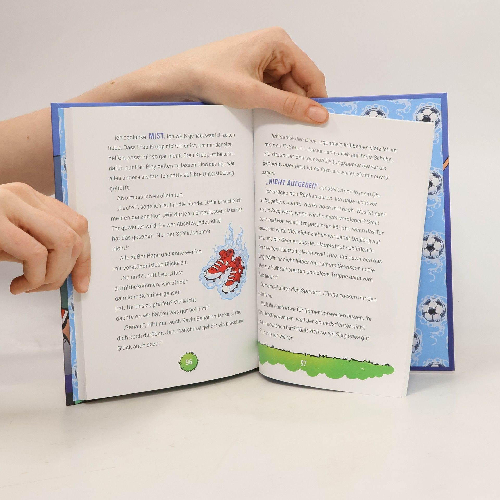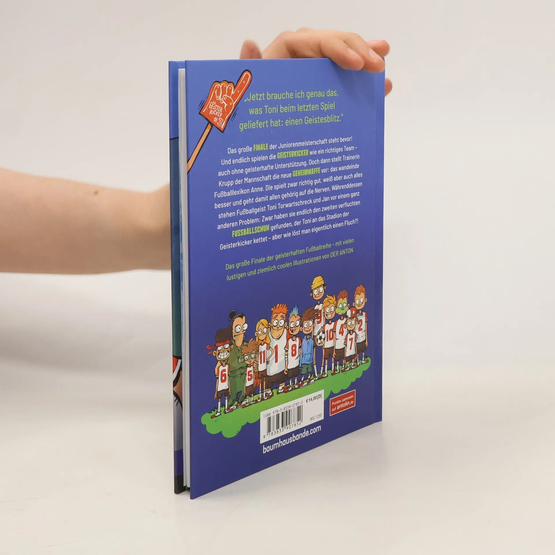 Jan kann es kaum glauben: Die Geisterkicker stehen kurz vor dem Finale der Juniorenmeisterschaft! Endlich hat das Team zusammengefunden, und es spielt wie eine Einheit - auch ohne geisterhafte Unterstützung. Doch dann stellt Trainerin Krupp der Mannschaft die neue Geheimwaffe vor: das wandelnde Fußballlexikon Anne. Die spielt zwar richtig gut, ist aber leider auch ziemlich neunmalklug und verscherzt es sich im Nu mit den anderen Spielern. Währenddessen stehen Fußballgeist Toni Torwartschreck und Jan vor einem ganz anderen Problem: Zwar haben sie endlich den zweiten verfluchten Fußballschuh gefunden, der Toni an das Stadion der Geisterkicker kettet - aber wie löst man eigentlich einen Fluch?