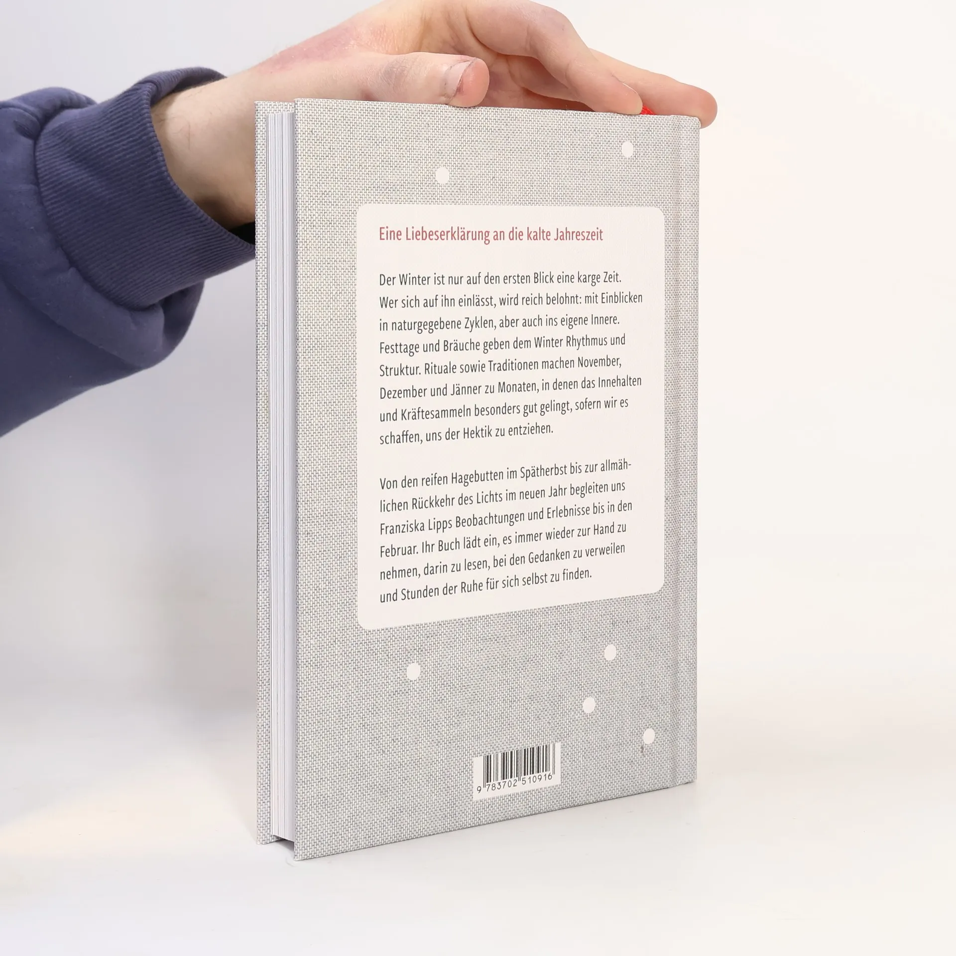 Eine Liebeserklärung an die kalte Jahreszeit Der Winter ist nur auf den ersten Blick eine karge Zeit. Wer sich darauf einlässt, wird reich belohnt: mit Einblicken in naturgegebene Zyklen, aber auch ins eigene Innere. Festtage und Bräuche geben dem Winter Rhythmus und Struktur. Rituale sowie Traditionen machen die Monate November, Dezember und Jänner zu einer Zeit, in der das Innehalten und Kräftesammeln besonders gut gelingt, sofern wir es schaffen, uns der Hektik zu entziehen. Von den reifenden Hagebutten im Spätherbst bis zur Rückkehr des Lichts Anfang Februar begleiten uns Franziska Lipps Beobachtungen und Erlebnisse durch den Winter. Ihr Buch lädt ein, es immer wieder zur Hand zu nehmen, darin zu lesen, bei den Gedanken zu verweilen und Zeit für sich selbst zu finden. Ein schönes Weihnachtsgeschenk in hochwertiger Ausstattung Mit diesem Lesebuch kommen Sie gut durch den Winter! Impulse zum Innehalten und Kräftesammeln – von Allerheiligen bis Maria Lichtmess