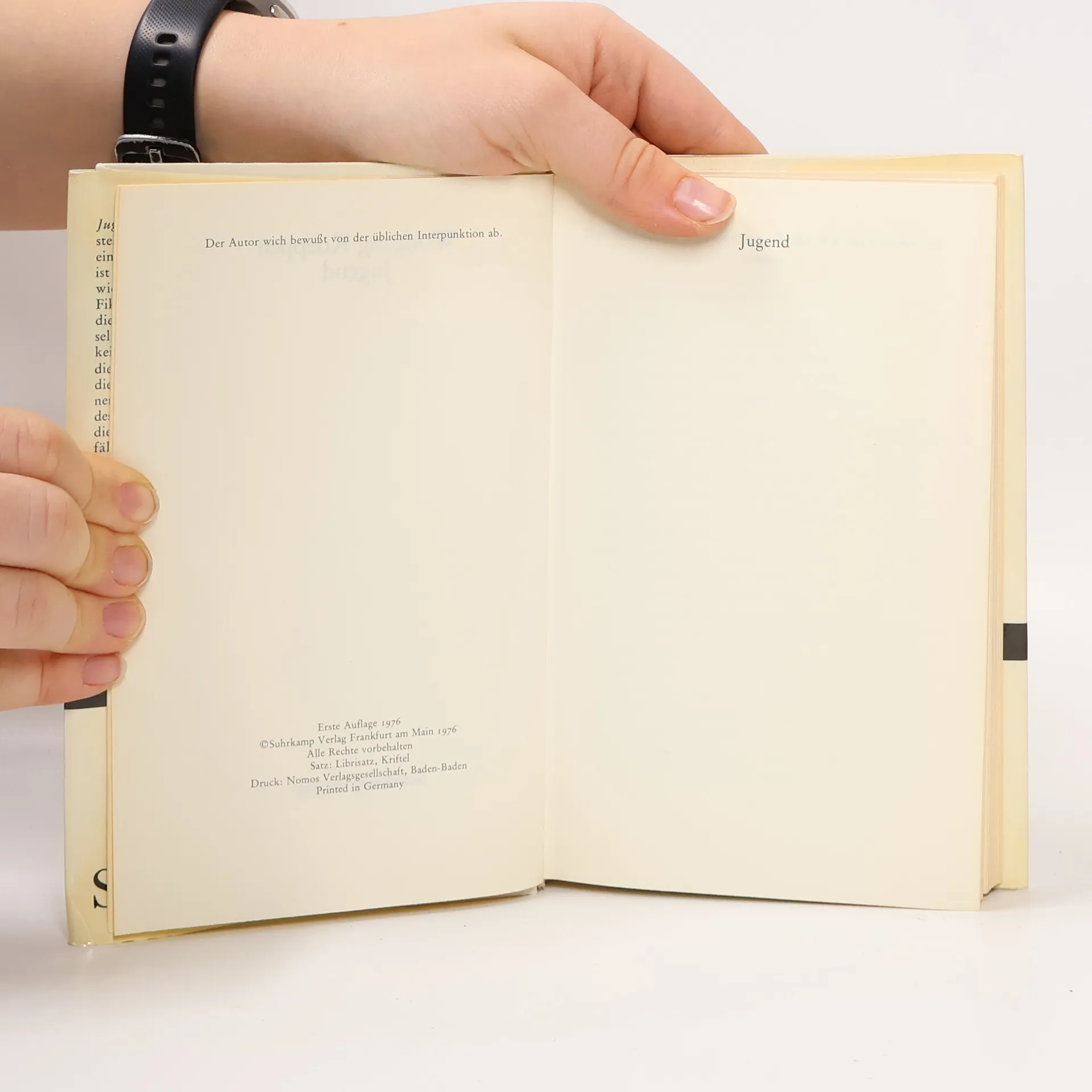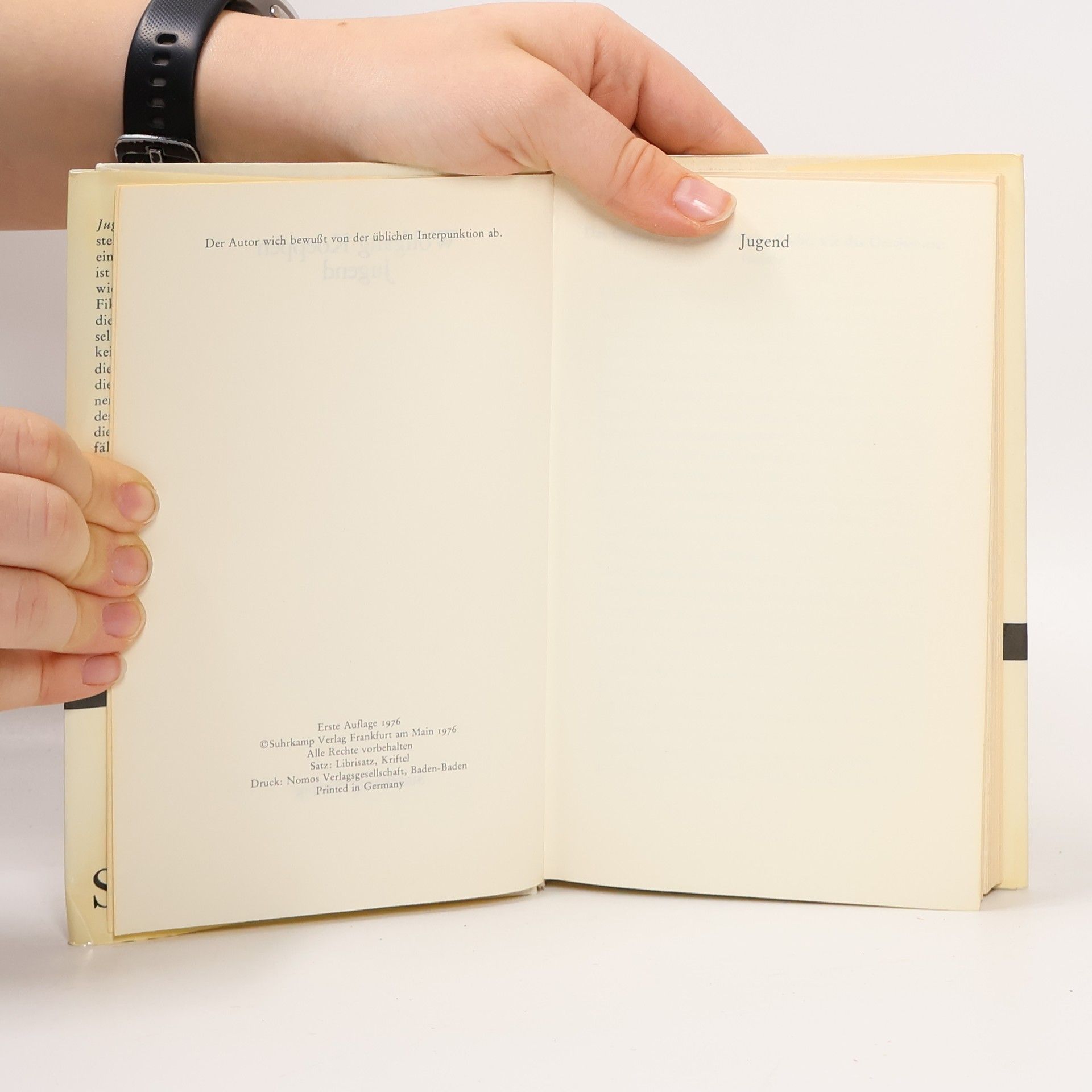 Jugend ist ebensosehr Darstellung der eigenen wie die einer fremden Jugend. Jugend ist ebensosehr Beschreibung wie Erzählung: Fakten und Fiktion mischen sich. Da sind die Kleinstadt und ihre Gesellschaft; die erste Wirklichkeit im Lichtspielhaus, und die Wirklichkeit des Kriegs, die der Mutter, des Gefallenen, die der Träume und die des Musters der Tapete. Und die Not, natürlich, die vielfältige Not. Wie immer bei Dichtungen ist auch diese Prosa zunächst vom Stil, dann erst vom Geschehen her zu begreifen."