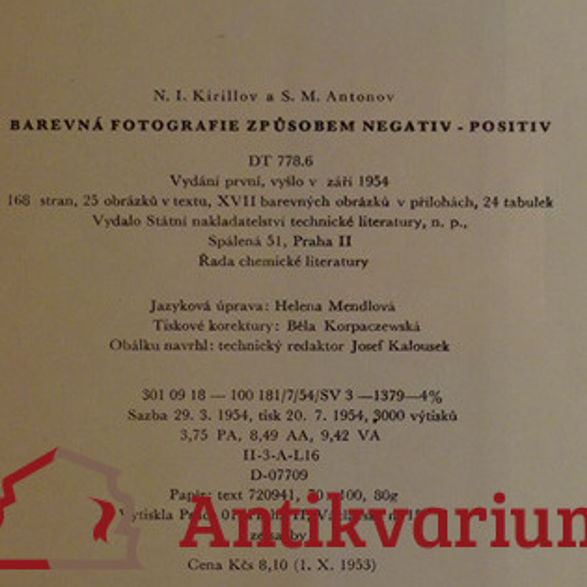 Barevná fotografie způsobem negativ-positiv : Určeno prac. ve filmovém prům. i fotografům-amatérům, Nikolaj Ivanovič Kirillov, Sergej Michajlovič Antonov