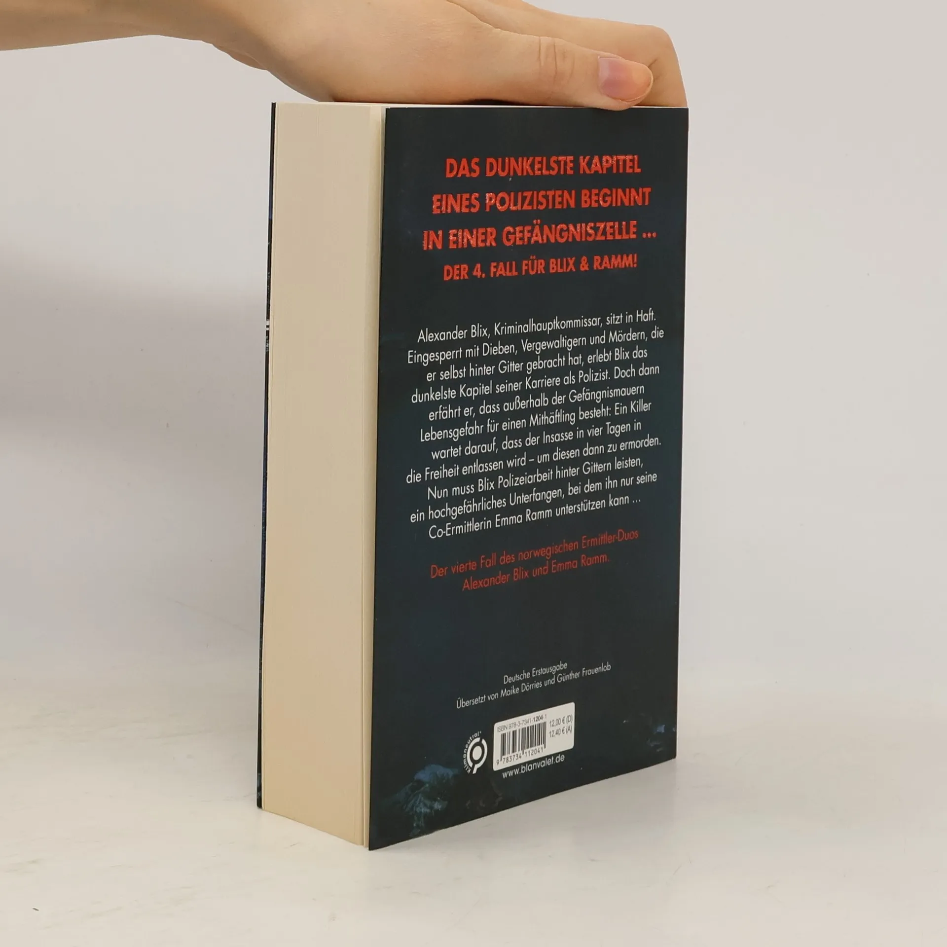 Das dunkelste Kapitel eines Polizisten beginnt dort, wo er nicht hingehört: in einer Gefängniszelle ... Der 4. Fall für Blix & Ramm! Alexander Blix, Kriminalhauptkommissar, sitzt in Haft. Eingesperrt mit Dieben, Vergewaltigern und Mördern, die er selbst hinter Gitter gebracht hat, erlebt Blix das dunkelste Kapitel seiner Karriere als Polizist. Doch dann erfährt er, dass außerhalb der Gefängnismauern Lebensgefahr für einen Mithäftling besteht: Ein Killer wartet darauf, dass der Insasse in vier Tagen in die Freiheit entlassen wird – um diesen dann zu ermorden. Nun muss Blix Polizeiarbeit hinter Gittern leisten, ein hochgefährliches Unterfangen, bei dem ihn nur seine Co-Ermittlerin Emma Ramm unterstützen kann ... Alle Bücher der Platz-1-Bestsellerserie aus Norwegen: BlutzahlBlutnebelBluttatBlutnachtBlutstunde