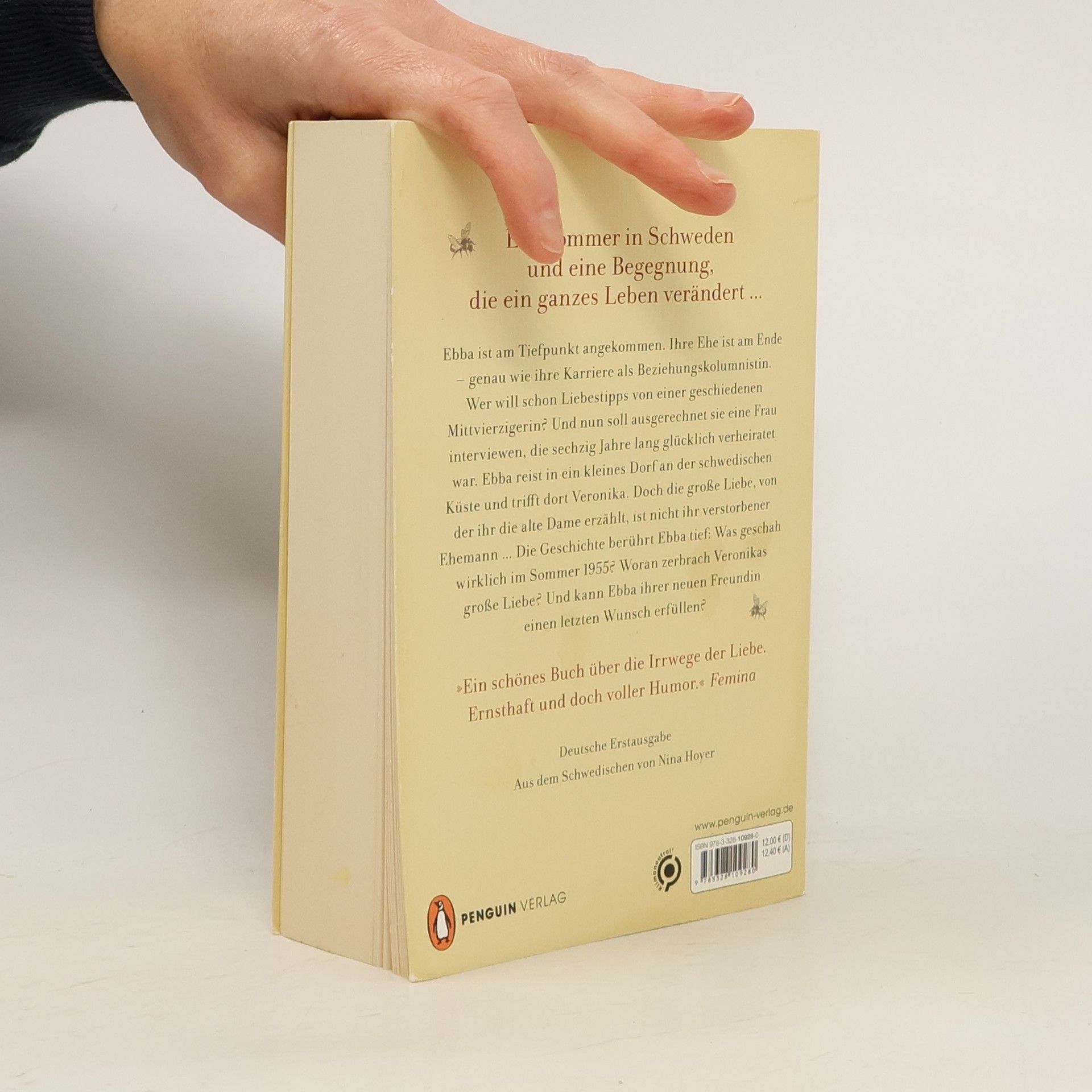 Ein Sommer in Schweden, eine Pension am Meer und eine Begegnung, die sie noch Jahrzehnte später im Herzen trägt ... Wer sein Herz öffnet, riskiert auch, verletzt zu werden. Diesen schlauen Spruch hat Ebba am eigenen Leib erfahren. Ihre Ehe ist am Ende – genau wie ihre Karriere als Beziehungskolumnistin. Denn wer will schon Beziehungstipps von einer geschiedenen Mittvierzigerin? Und nun soll ausgerechnet sie eine Frau interviewen, die 60 Jahre lang glücklich verheiratet war! Ebba reist nach Nordschweden, in ein kleines Dorf und trifft dort Veronika, die mit 79 Jahren immer noch eine eindrucksvolle Erscheinung ist. Doch die große Liebe, von der sie erzählt, ist nicht ihr verstorbener Mann … Ihre Geschichte berührt Ebba zutiefst: Was geschah wirklich im Sommer 1955? Woran scheiterte Veronikas große Liebe? Und: Kann Ebba ihrer neuen Freundin einen letzten Wunsch erfüllen?