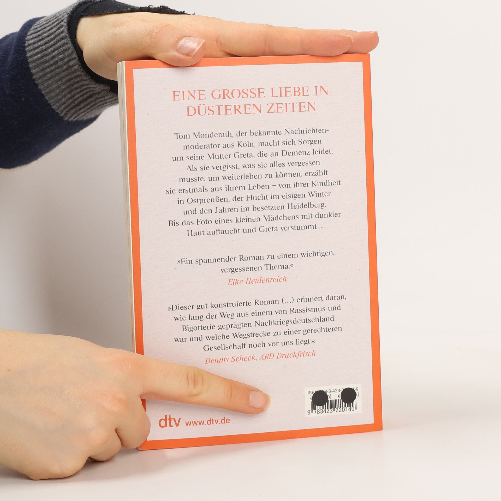 Eine große Liebe in düsteren Zeiten ist ein bemerkenswertes Debüt und ein generationsübergreifender Familienroman. Der Kölner Nachrichtenmoderator Tom Monderath ist besorgt um seine 84-jährige Mutter Greta, die zunehmend vergesslich wird. Als die Diagnose Demenz im Raum steht, ist Tom erschüttert. Doch die Krankheit wird zu einem Geschenk, als Greta beginnt, von ihrem Leben zu erzählen – von ihrer Kindheit in Ostpreußen, ihren geliebten Großeltern, der Flucht vor den russischen Soldaten im Winter und ihrer Zeit im besetzten Heidelberg. Als Tom jedoch ein Foto eines kleinen Mädchens mit dunkler Haut entdeckt, verstummt Greta. Dies führt Tom dazu, sich intensiver mit der Vergangenheit seiner Mutter auseinanderzusetzen, um ihre Traurigkeit zu verstehen und sein eigenes Glück zu finden. Nichts bleibt für immer vergessen – die Autorin schreibt hochemotional, klug und einfühlsam. Der Roman thematisiert wichtige, oft vergessene Aspekte der Geschichte und reflektiert über den langen Weg aus einem von Rassismus und Bigotterie geprägten Nachkriegsdeutschland.