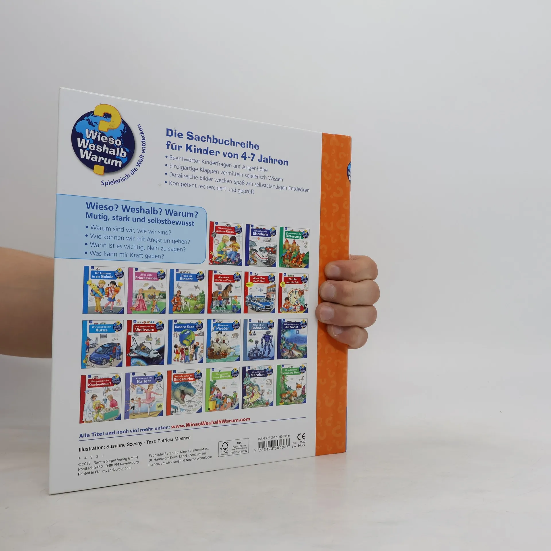 Mut tut gut! Wann sind wir mutig? Worauf bist du stolz? Wie fühlen sich Gemeinschaft und Ausgrenzung an? Dieses Buch nimmt Kinder an die Hand beim Erkunden von Situationen und Gefühlen rund ums Selbstbewusstsein. Klappen machen das Thema hautnah erlebbar: Ein Kind traut sich das erste Mal alleine einzukaufen, ein anderes muntert eine traurige Freundin auf. Wir erklären, wozu Angst da ist und zeigen, wie man Mut und Stärke trainieren kann. Ein Buch für ALLE Kinder – die forschen und die zurückhaltenden! Wieso? Weshalb? Warum? Die Sachbuchreihe für Kinder von 4–7 Jahren Jeden Tag entdecken Kinder etwas Neues – da kommen viele Fragen auf. Warum sind die Dinosaurier ausgestorben? Wo ist die Sonne in der Nacht? Wozu brauchen wir das Blut? Die beliebte Sachbuchreihe Wieso? Weshalb? Warum? gibt Kindern Antworten auf Augenhöhe. Dabei werden die unterschiedlichsten Themen aus der Alltags- und Interessenswelt der Kinder altersgerecht und mit viel Liebe zum Detail unter die Lupe genommen. Detailreiche Bilder, verständliche Sachtexte und überraschende Klappen, die Bewegungen oder Abläufe veranschaulichen und hinter die Dinge blicken lassen, ermöglichen Kindern, sich ihre Themen selbst zu erschließen. Der Spaß am eigenhändigen Entdecken, die liebevolle Umsetzung und die qualitativ hochwertige Ausstattung garantieren langanhaltende Freude an jedem einzelnen Buch.
