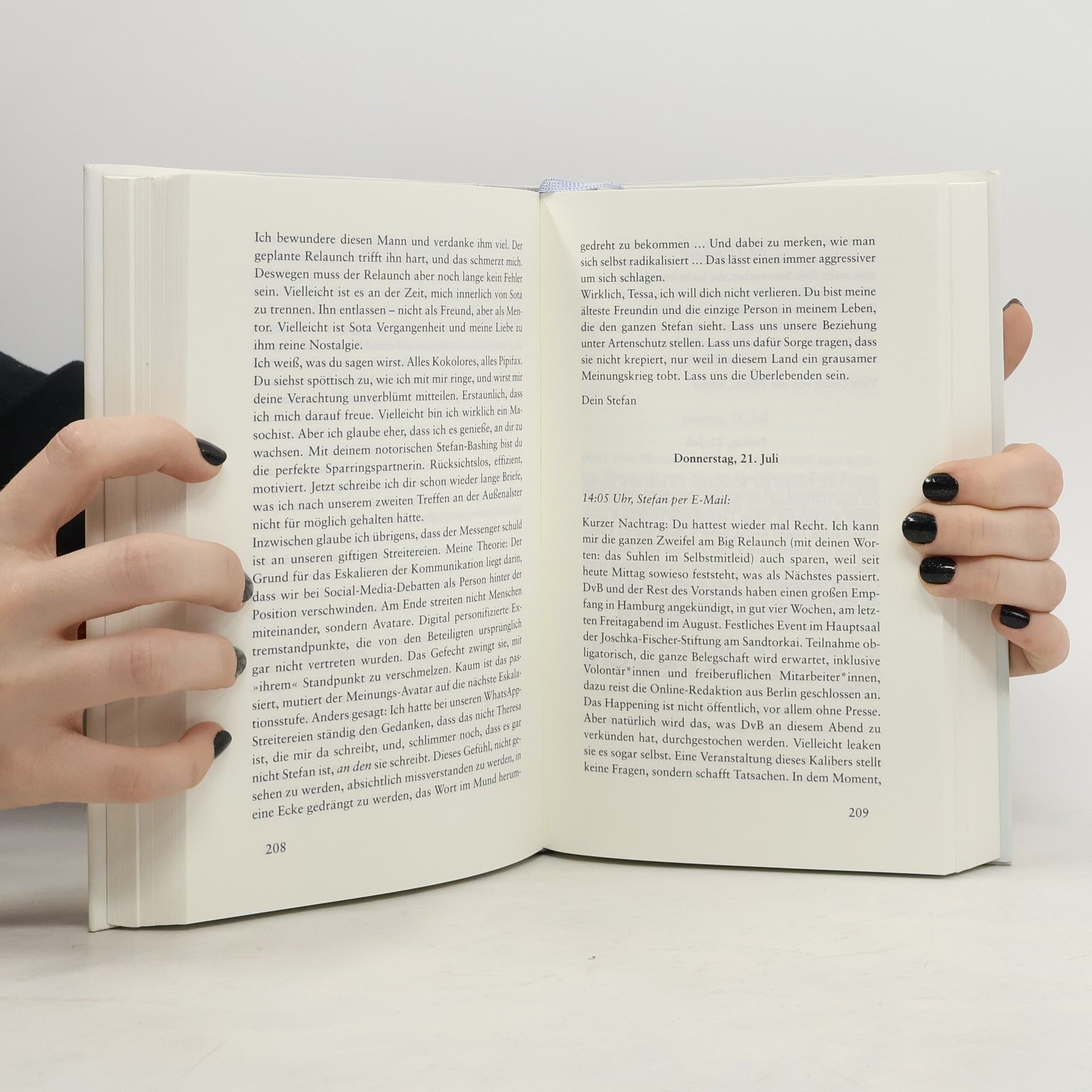 »Ein großer Gesellschaftsroman. Passt perfekt in unsere Zeit.« Christhard Läpple, ZDF Heute Journal Zwanzig Jahre sind vergangen: Als sich Stefan und Theresa zufällig in Hamburg über den Weg laufen, endet ihr erstes Wiedersehen in einem Desaster. Zu Studienzeiten waren sie wie eine Familie füreinander, heute sind kaum noch Gemeinsamkeiten übrig. Stefan hat Karriere bei Deutschlands größter Wochenzeitung DER BOTE gemacht, Theresa den Bauernhof ihres Vaters in Brandenburg übernommen. Aus den unterschiedlichen Lebensentwürfen sind gegensätzliche Haltungen geworden. Stefan versucht bei seiner Zeitung, durch engagierte journalistische Projekte den Klimawandel zu bekämpfen. Theresa steht mit ihrem Bio-Milchhof vor Herausforderungen, die sie an den Rand ihrer Kraft bringen. Die beiden beschließen, noch einmal von vorne anzufangen, sich per E-Mail und WhatsApp gegenseitig aus ihren Welten zu erzählen. Doch während sie einander näherkommen, geraten sie immer wieder in einen hitzigen Schlagabtausch um polarisierende Fragen wie Klimapolitik, Gendersprache und Rassismusvorwürfe. Ist heute wirklich jeder und jede gezwungen, eine Seite zu wählen? Oder gibt es noch Gemeinsamkeiten zwischen den Welten? Und können Freundschaft und Liebe die Kluft überbrücken?
