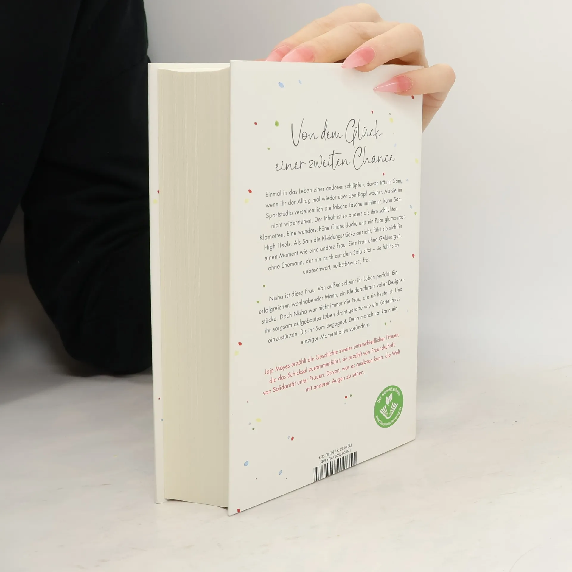Mit «Ein ganzes halbes Jahr» hat Jojo Moyes Millionen Leser: innen-Herzen erobert. Ihre Romane sind unvergleichlich, lassen uns mitfühlen, bringen uns zum Weinen und zum Lachen. In ihrem neuen Roman erzählt Jojo Moyes die Geschichte zweier ungleicher Frauen, die das Schicksal zusammenführt. Einmal in das Leben einer anderen schlüpfen, davon träumt Sam, wenn ihr der Alltag mal wieder über den Kopf wächst. Als sie im Sportstudio versehentlich die falsche Tasche mitnimmt, kann sie nicht widerstehen. Der Inhalt ist so anders als ihre schlichten Klamotten. Eine wunderschöne Chanel-Jacke und ein Paar glamouröse High Heels. Als Sam die Kleidungsstücke anzieht, fühlt sie sich für einen Moment wie eine andere Frau. Eine Frau ohne Geldsorgen, ohne Ehemann, der nur noch auf dem Sofa sitzt - sie fühlt sich unbeschwert, selbstbewusst, frei. Nisha ist diese Frau. Von außen scheint ihr Leben perfekt. Ein erfolgreicher, wohlhabender Mann, ein Kleiderschrank voller Designerstücke. Doch Nisha war nicht immer die Frau, die sie heute ist. Und ihr sorgsam aufgebautes Leben droht gerade wie ein Kartenhaus einzustürzen. Bis ihr Sam begegnet. Denn manchmal kann ein einziger Moment alles verändern. Jojo Moyes erzählt die Geschichte von Sam und Nisha, sie erzählt von Freundschaft, von Solidarität unter Frauen. Davon, was es auslösen kann, die Welt mit anderen Augen zu sehen. Und von dem Glück einer zweiten Chance.