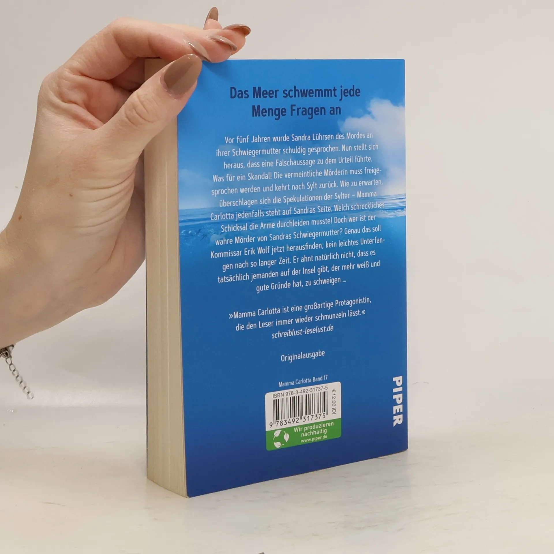 Das Meer schwemmt jede Menge Fragen an Vor fünf Jahren wurde Sandra Lührsen des Mordes an ihrer Schwiegermutter schuldig gesprochen. Nun stellt sich heraus, dass eine Falschaussage zu dem Urteil führte. Was für ein Skandal! Die vermeintliche Mörderin muss freigesprochen werden und kehrt nach Sylt zurück. Wie zu erwarten, überschlagen sich die Spekulationen der Sylter – Mamma Carlotta jedenfalls steht auf Sandras Seite, welch schreckliches Schicksal die Arme durchleiden musste! Doch wer ist der wahre Mörder ihrer Schwiegermutter? Genau das soll Kommissar Erik Wolf jetzt herausfinden; kein leichtes Unterfangen nach so langer Zeit. Er ahnt natürlich nicht, dass es tatsächlich jemanden auf der Insel gibt, der mehr weiß und gute Gründe hat, zu schweigen … Die Kult-Ermittlerin Mamma Carlotta ist auch in ihrem neuesten Fall wieder auf geheimer Verbrecherjagd und erlebt so manches Abenteuer. Mamma Carlottas 17. Fall auf Sylt! Diese Bände der Reihe sind bereits erschienen: Band 1: Die Tote am Watt Band 2: Gestrandet Band 3: Tod im Dünengras Band 4: Flammen im Sand Band 5: Inselzirkus Band 6: Küstennebel Band 7: Kurschatten Band 8: Strandläufer Band 9: Sonnendeck Band 10: Gegenwind Band 11: Vogelkoje Band 12: Wellenbrecher Band 13: Sturmflut Band 14: Zugvögel Band 15: Lachmöwe Band 16: Schwarze Schafe Band 17: Treibholz