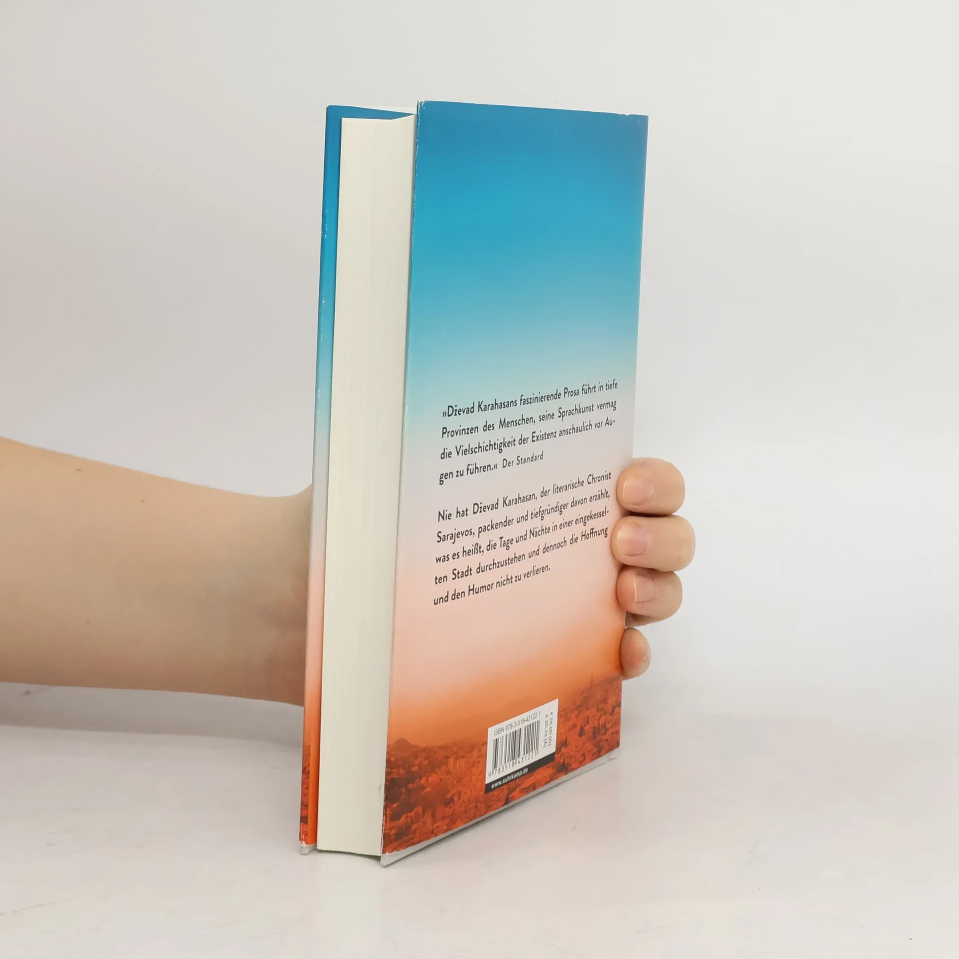 Peter Hurd, Altphilologe und Mythenforscher, kommt zu einer Lesung nach Sarajevo – wenige Tage vor Beginn des Krieges. Als sein Übersetzer und Bewunderer Rajko ihn am Busbahnhof wieder verabschieden will, fasst Peter spontan den Entschluss zu bleiben: die Chance, mitzuerleben, wie Menschen sich in Extremsituationen verhalten, will er sich nicht entgehen lassen. Mit Rajko teilt er den Alltag, er begleitet ihn durch die unter Granatenbeschuss liegenden Nachbarschaft, lernt Freunde und Verwandte kennen, auch Sanja, in die er sich verliebt. Eines Tages macht er sich allein auf den Weg und kehrt zurück, kaum wiederzuerkennen … Noch nie hat Karahasan, der literarische Chronist Sarajevos, so eindringlich und facettenreich davon erzählt, was es bedeutet, in einer eingekesselten, von Rauchschwaden und Gestank durchzogenen Stadt die Tage und Nächte zu überstehen und dennoch die Hoffnung und den Humor nicht zu verlieren. Um eine unsichtbare Achse kreisend, lotet seine Geschichte eine ethische und existentielle Grenzerfahrung aus – die Einübung ins Schweben.