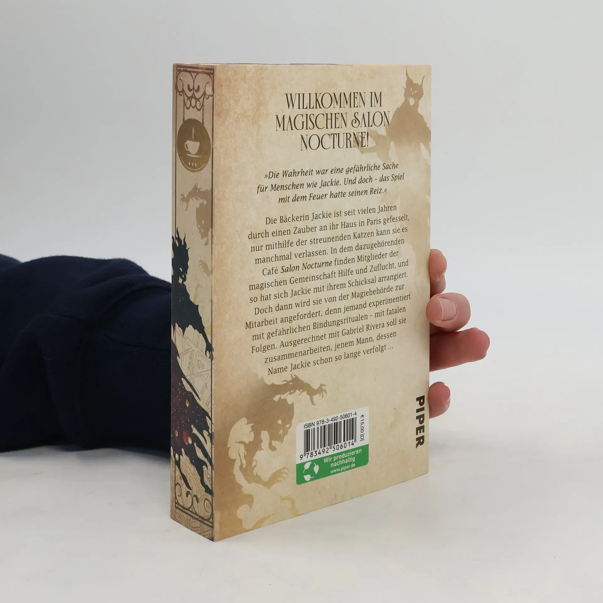 Ein magisches Café, gefährliche Rituale und zarte Gefühle in Paris: mitreißende Urban Fantasy für Fans von Liza Grimm und Laura Kneidl. Nominiert für SERAPH 2024 in der Kategorie »Bestes Debüt«. Jackie, eine magiebegabte Bäckerin, ist durch einen mächtigen Zauber an ihr Haus in Paris gebunden und kann es nur mit Hilfe streunender Katzen verlassen. In ihrem Café Salon Nocturne verkauft sie magische Tränke und Tinkturen und hat sich mit ihrem Schicksal arrangiert. Doch als jemand mit gefährlichen Bindungsritualen experimentiert, wird Jackie von ASRAM, der Agentur zur Kontrolle der Magie, als Expertin angefordert. Die Zusammenarbeit widerstrebt ihr, besonders als Gabriel Rivera geschickt wird – der Mann, dessen Name sie schon lange verfolgt und der alles daran setzt, ihre geordnete Welt aus den Fugen zu reißen. Die Geschichte ist fesselnd und bietet eine komplexe Handlung, die Leser in ihren Bann zieht. Perfekt für gemütliche, regnerische Abende mit Tee und Keksen, ist es ideal für diejenigen, die ruhige Bücher und langsame Plots schätzen. Die ungewöhnliche und komplexe Erzählung lässt auf Folgebände hoffen und spricht Leser an, die Geheimnisse und Rätsel lieben.