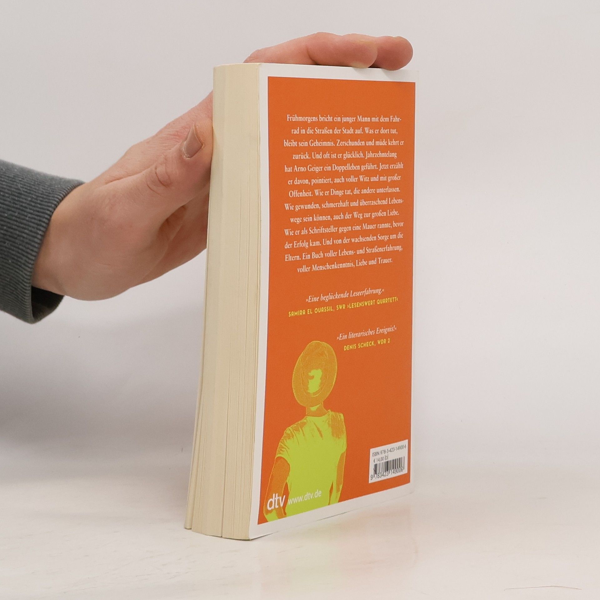 »Ein literarisches Ereignis!« Denis Scheck, WDR 2 Frühmorgens bricht ein junger Mann mit dem Fahrrad in die Straßen der Stadt auf. Was er dort tut, bleibt sein Geheimnis. Zerschunden und müde kehrt er zurück. Und oft ist er glücklich. Jahrzehntelang hat Arno Geiger ein Doppelleben geführt. Jetzt erzählt er davon, pointiert, auch voller Witz und mit großer Offenheit. Wie er Dinge tat, die andere unterlassen. Wie gewunden, schmerzhaft und überraschend Lebenswege sein können, auch der Weg zur großen Liebe. Wie er als Schriftsteller gegen eine Mauer rannte, bevor der Erfolg kam. Und von der wachsenden Sorge um die Eltern. Ein Buch voller Lebens- und Straßenerfahrung, voller Menschenkenntnis, Liebe und Trauer.