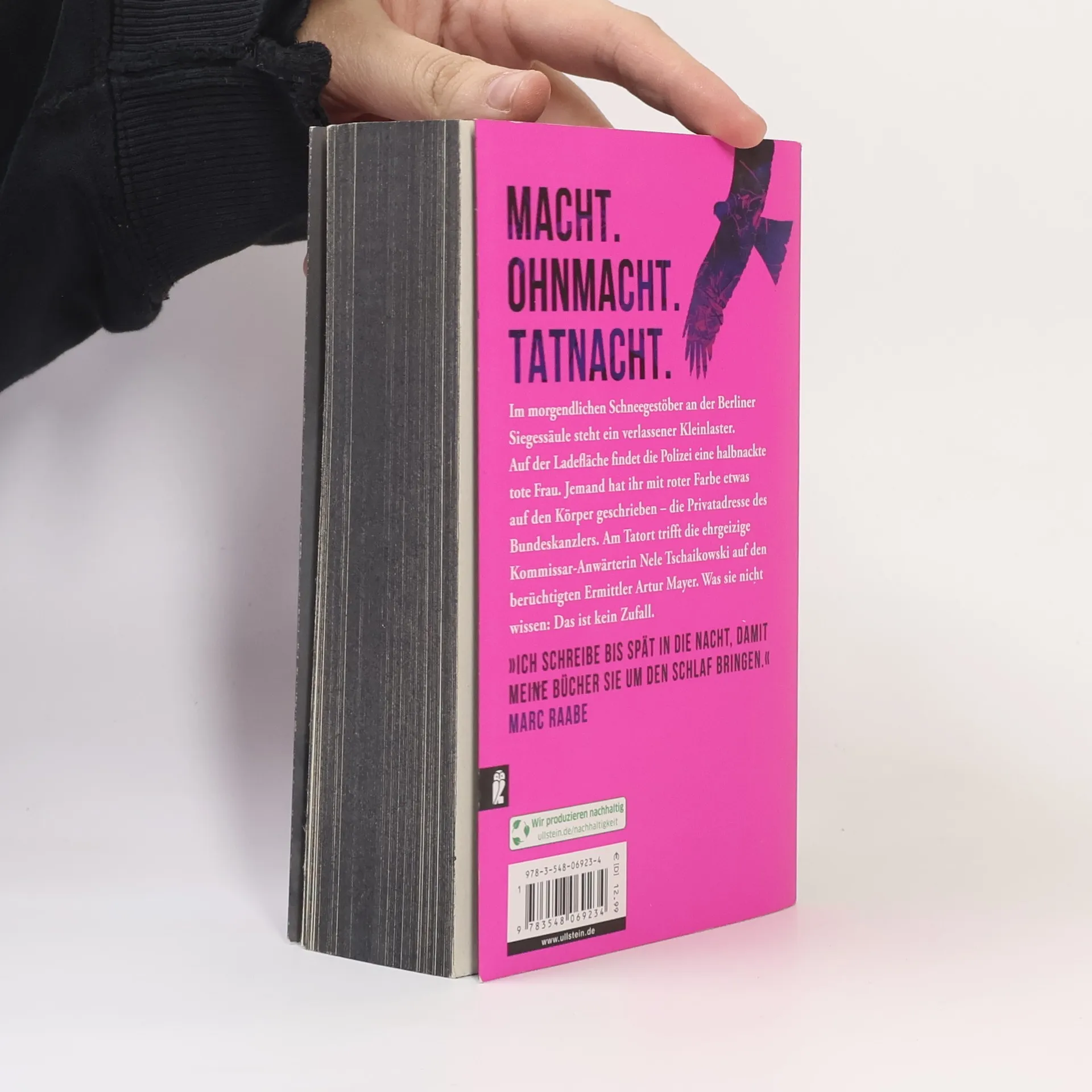 Macht. Ohnmacht. Tatnacht. Im morgendlichen Schneegestöber an der Berliner Siegessäule steht ein verlassener Kleinlaster. Auf der Ladefläche findet die Polizei eine halbnackte tote Frau. Jemand hat ihr mit roter Farbe etwas auf den Körper geschrieben - die Privatadresse des Bundeskanzlers. Am Tatort trifft die ehrgeizige Kommissar-Anwärterin Nele Tschaikowski auf den berüchtigten Ermittler Artur Mayer. Was sie nicht wissen: Das ist kein Zufall. Das Thriller-Ereignis mit farbigem Buchschnitt!