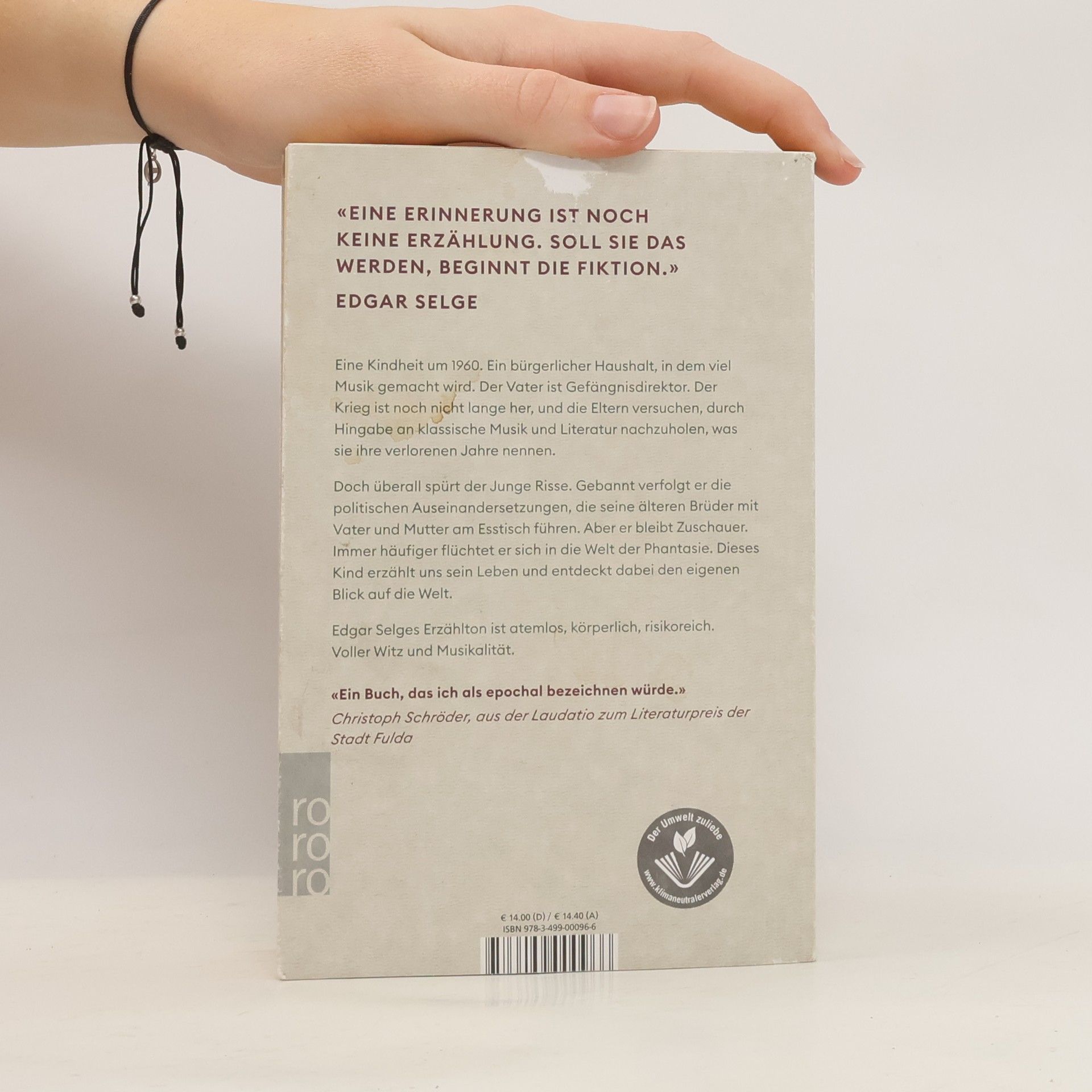Das literarische Debüt von Edgar Selge: Ein Zwölfjähriger erzählt seine Geschichte zwischen Gefängnismauer und klassischer Musik. Exemplarisch und radikal persönlich. Eine Kindheit um 1960, in einer Stadt, nicht groß, nicht klein. Ein bürgerlicher Haushalt, in dem viel Musik gemacht wird. Der Vater ist Gefängnisdirektor. Der Krieg ist noch nicht lange her, und die Eltern versuchen, durch Hingabe an klassische Musik und Literatur nachzuholen, was sie ihre verlorenen Jahre nennen. Überall spürt der Junge Risse in dieser geordneten Welt. Gebannt verfolgt er die politischen Auseinandersetzungen, die seine älteren Brüder mit Vater und Mutter am Esstisch führen. Aber er bleibt Zuschauer. Immer häufiger flüchtet er sich in die Welt der Fantasie. Dieser Junge, den der Autor als fernen Bruder seiner selbst betrachtet, erzählt uns sein Leben und entdeckt dabei den eigenen Blick auf die Welt. Wenn sich der dreiundsiebzigjährige Edgar Selge gelegentlich selbst einschaltet, wird klar: Die Schatten der Kriegsgeneration reichen bis in die Gegenwart hinein. Edgar Selges Erzählton ist atemlos, körperlich, risikoreich. Voller Witz und Musikalität. Ob Bach oder Beethoven, Schubert oder Dvořák, Marschmusik oder Gospel: Wie eine zweite Erzählung legt sich die Musik über die Geschichte und begleitet den unbeirrbaren Drang nach Freiheit.
