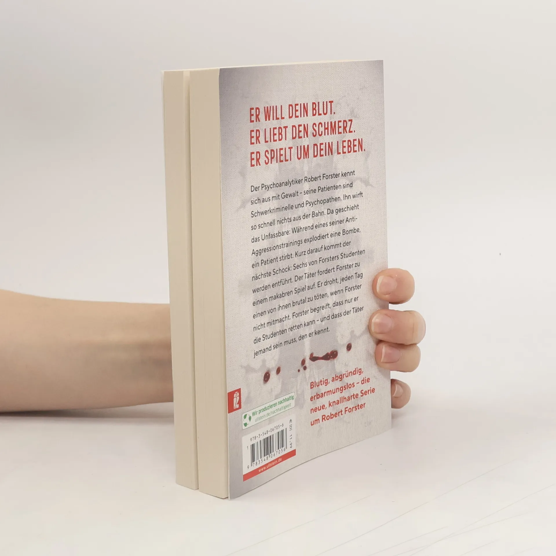 Er will dein Blut. Er liebt den Schmerz. Er spielt um dein Leben. Der Psychoanalytiker Robert Forster kennt sich aus mit Gewalt – seine Patienten sind Schwerkriminelle und Psychopathen. Ihn wirft so schnell nichts aus der Bahn. Da geschieht das Unfassbare: Während eines seiner Anti-Aggressionstrainings explodiert eine Bombe, ein Patient stirbt. Kurz darauf kommt der nächste Schock: Sechs von Forsters Studenten werden entführt. Der Täter fordert Forster zu einem makabren Spiel um das Leben der Menschen auf. Er droht, jeden Tag einen von ihnen brutal zu töten, wenn Forster nicht mitmacht. Forster begreift, dass nur er die Studenten retten kann – und dass der Täter jemand sein muss, der ihn kennt.