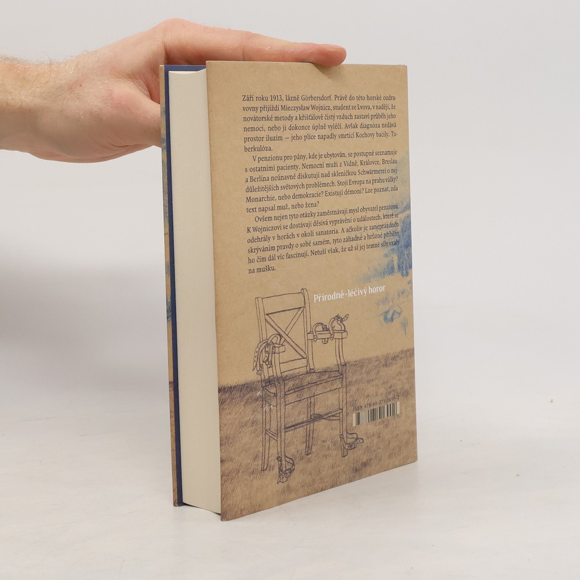 Přírodní léčivý horor. Září roku 1913, léčebné lázně Görbersdorf. Mieczysław Wojnicz, student ze Lvova, přijíždí do lázní v naději, že nejmodernější metody a křišťálově čistý vzduch zastaví průběh jeho nemoci, nebo ji možná úplně vyléčí. Avšak diagnóza nedává prostor iluzím. Mieczysław totiž trpí tuberkulózou. Ubytuje se v penzionu, kde poznává některé z pacientů. Nad likérem Schwärmerei nemocní muži z Vídně, Královce a Vratislavi neúnavně diskutují o nejpalčivějších světových problémech. Stojí Evropa na prahu války? Je lepší monarchie, nebo demokracie? Existuje zlo? Je možné určit, zda nějaký text psal muž, nebo žena? Mieczysław zároveň naslouchá šokujícím příběhům o tragických událostech, které se odehrály na vrchovině v okolí sanatoria. Ačkoli je zaneprázdněn hledáním pravdy v sobě samém, záhadné hrůzné události ho čím dál tím víc fascinují. Netuší však, že už si ho zlověstné síly vybraly za svůj další terč.