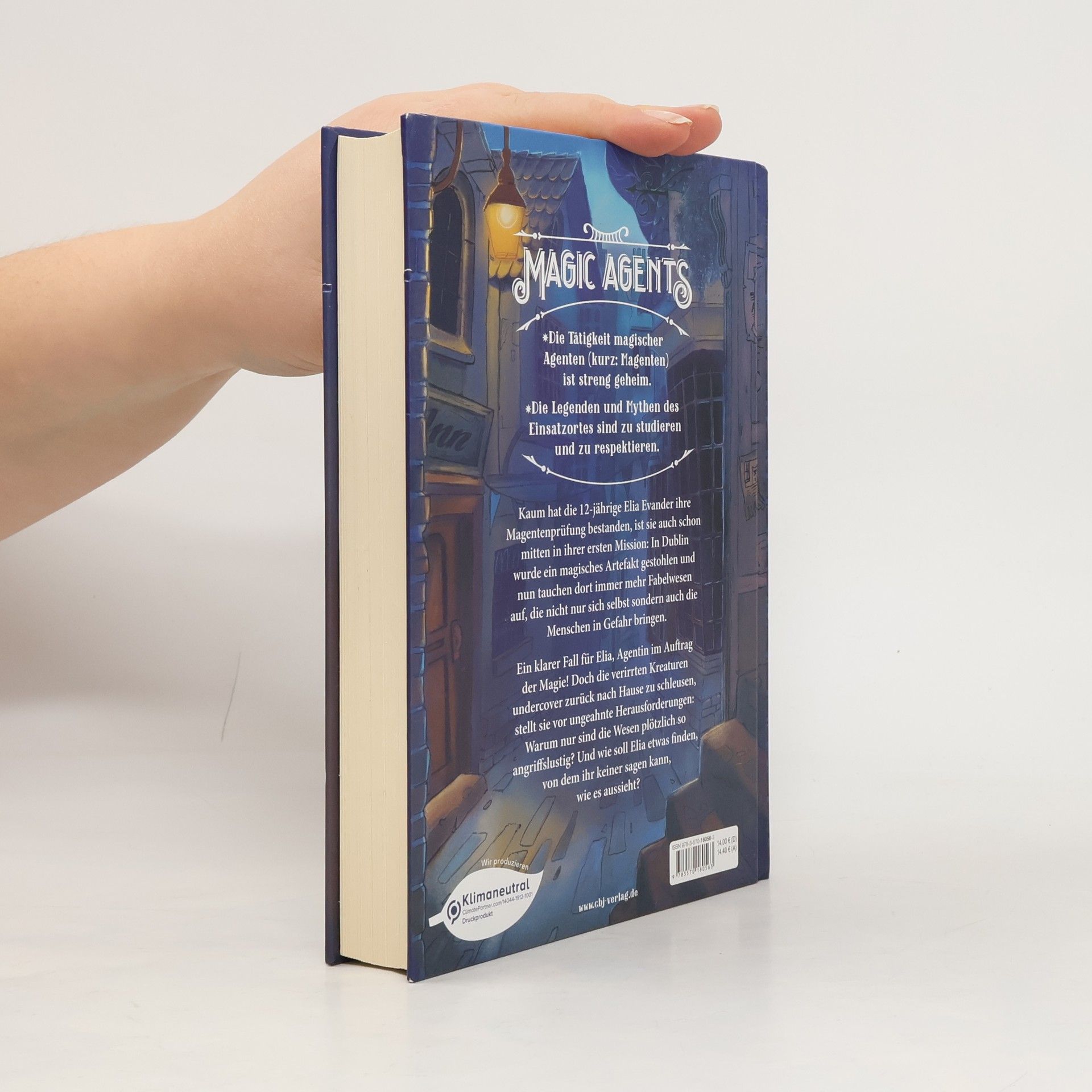 1. Die Tätigkeit magischer Agenten (kurz: Magenten) ist streng geheim. 2. Die landestypischen Legenden des jeweiligen Einsatzortes sind zu studieren und zu respektieren. 3. Magentenfaustregel: Traue niemandem und traue jedem alles zu. Kaum hat die 12-jährige Elia Evander ihre Magentenprüfung bestanden, ist sie auch schon mitten in ihrer ersten Mission: In Dublin wurde ein magisches Artefakt gestohlen! Nun tauchen immer mehr Fabelwesen in der Stadt auf, die nicht nur sich selbst sondern auch die Menschen in Gefahr bringen. Ein klarer Fall für Elia, Agentin im Auftrag der Magie! Doch die verirrten Kreaturen undercover zurück in ihre Welt zu schleusen, stellt sie vor ungeahnte Herausforderungen: Warum nur sind die Wesen plötzlich so angriffslustig? Und wie soll Elia etwas finden, von dem ihr keiner sagen kann, wie es aussieht? Fabelwesen, magische Action und eine Prise irisches Fernweh: Der erste Einsatz für Magentin Elia Evander! Alle Bände der Magic Agents -Reihe: Magic Agents – In Dublin sind die Feen los! (Band 1) Magic Agents – In Prag drehen die Geister durch! (Band 2) Ausstattung: Mit s/w-Vignetten