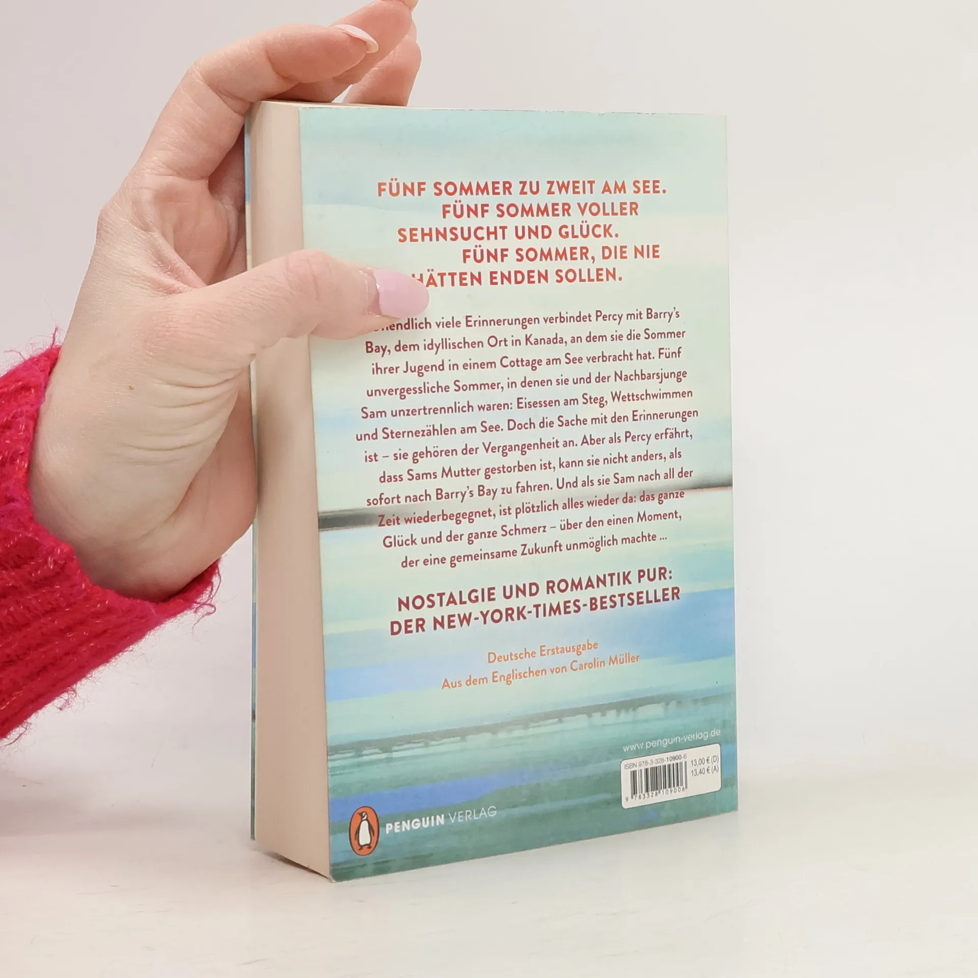 Fünf Sommer zu zweit am See. Fünf Sommer voller Sehnsucht und Glück. Fünf Sommer, die nie hätten enden sollen. Eine unwiderstehliche Friends-to-Lovers-Liebesgeschichte an einem funkelnden kanadischen See – der große New-York-Times-Bestseller! Unendlich viele Erinnerungen verbindet Percy mit Barry’s Bay, dem idyllischen Ort in Kanada, an dem sie die Sommer ihrer Jugend in einem Cottage am See verbracht hat. Fünf unvergessliche Sommer, in denen sie und der Nachbarsjunge Sam unzertrennlich waren: Eisessen am Steg, Wettschwimmen und Sternezählen am See. Doch die Sache mit den Erinnerungen ist – sie gehören der Vergangenheit an. Aber als Percy erfährt, dass Sams Mutter gestorben ist, kann sie nicht anders, als sofort nach Barry’s Bay zu fahren. Und als sie Sam nach all der Zeit wiederbegegnet, ist plötzlich alles wieder da: das ganze Glück und der ganze Schmerz – über den einen Moment, der eine gemeinsame Zukunft unmöglich machte …»Ein Debüt voller Nostalgie und Herz. So wie wir uns an unvergessliche Sommer erinnern, bleibt auch diese Liebesgeschichte weit über die Lektüre hinaus im Herzen.« USA Today