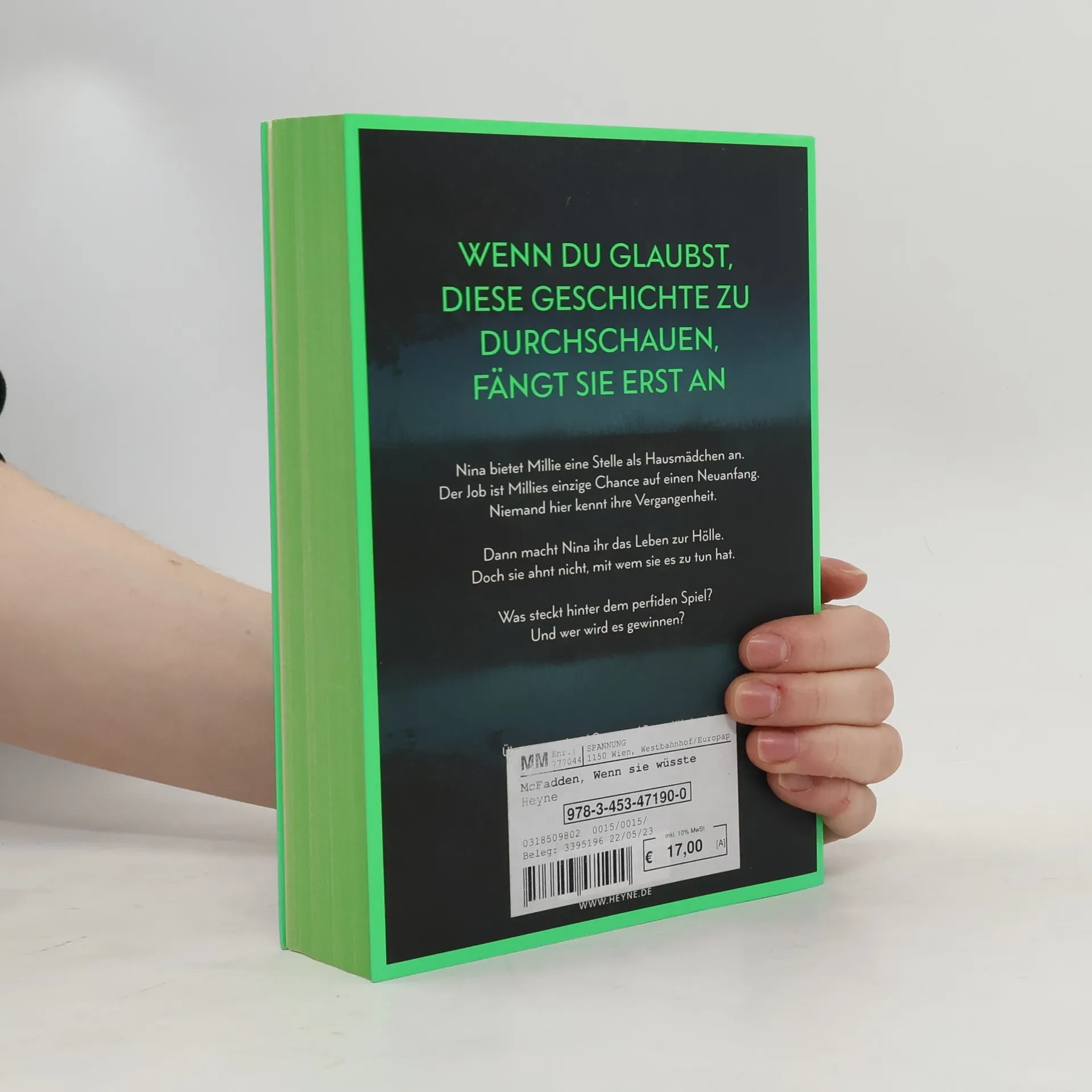 Wenn du glaubst, diese Geschichte zu durchschauen, fängt sie erst an Millie kann ihr Glück kaum fassen, als die elegante Nina ihr die Stelle als Haushaltshilfe inklusive Kost und Logis bei ihrer Familie auf Long Island anbietet. Schließlich hat sie eine Vergangenheit, von der niemand etwas wissen soll. Doch kaum ist Millie eingezogen, zeigt Nina ihr wahres Gesicht: Sie verwüstet das Haus und unterstellt ihr Dinge, die sie nicht getan hat. Ihre verwöhnte Tochter behandelt Millie ohne jeden Respekt. Nur Ninas attraktiver Mann Andrew ist nett zu ihr. Wäre da nur nicht Ninas wachsende Eifersucht. Hat sie Millie nur eingestellt, um ihr das Leben zur Hölle zu machen? Oder hat auch sie ein dunkles Geheimnis, von dem niemand etwas erfahren darf?