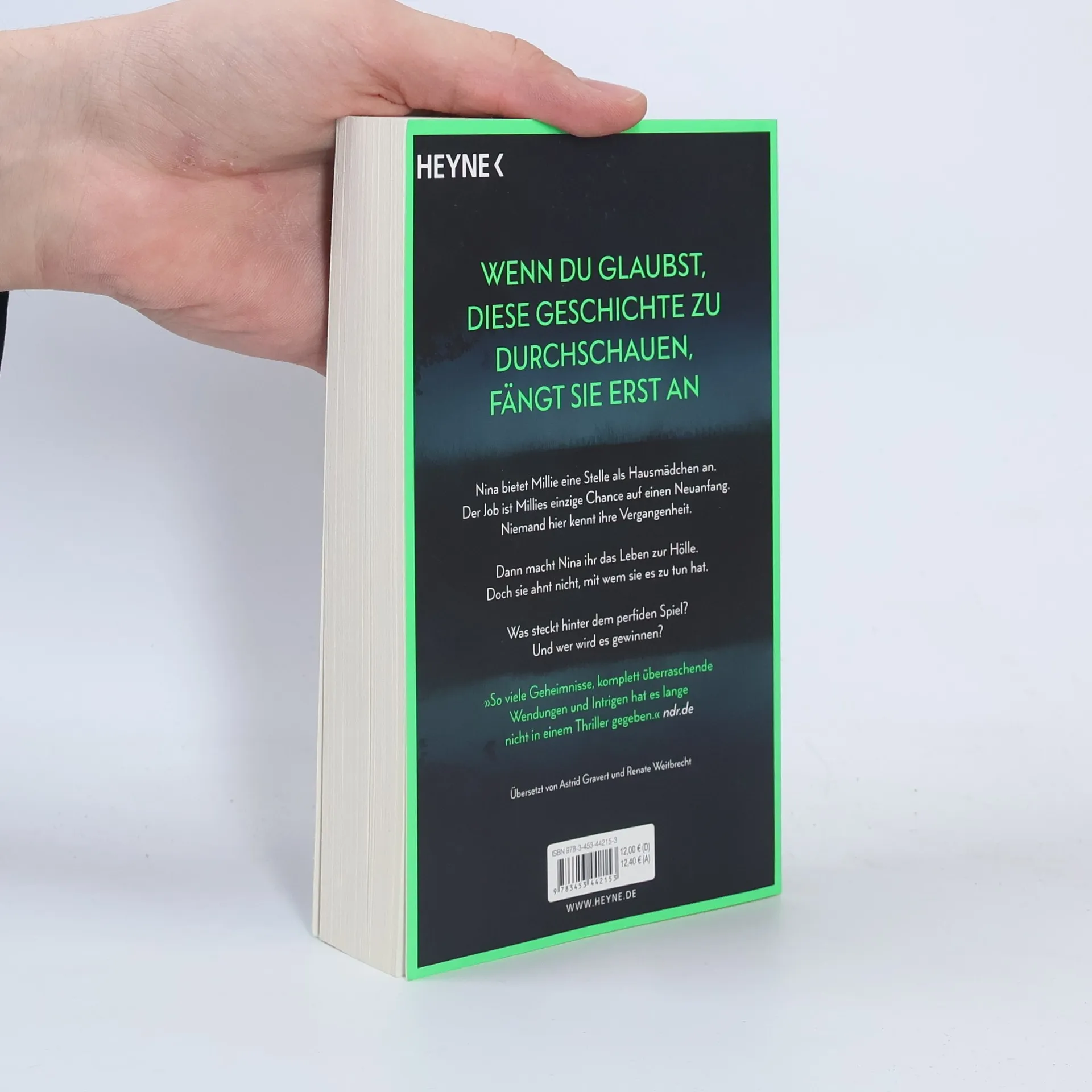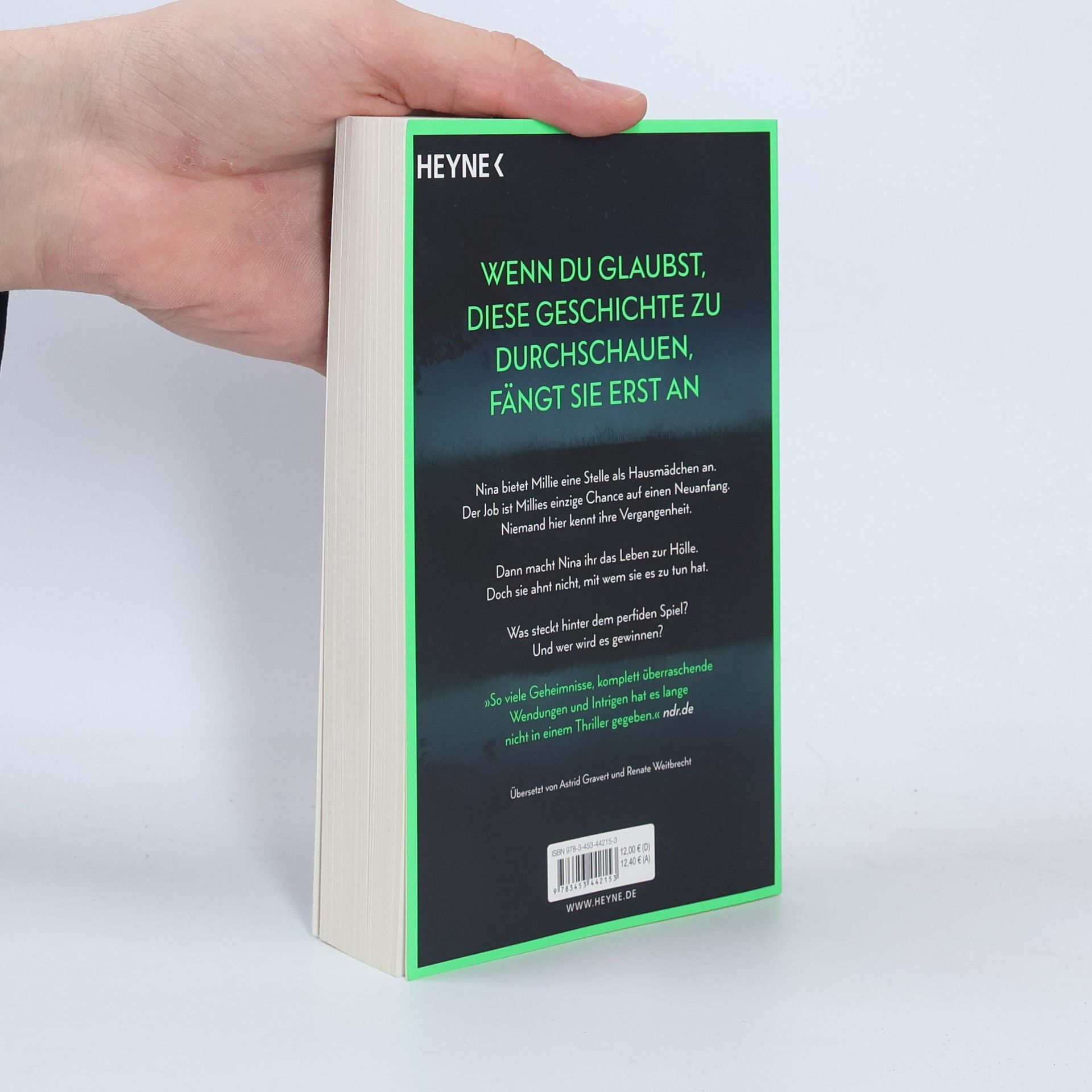 Wenn du glaubst, diese Geschichte zu durchschauen, fängt sie erst an Millie kann ihr Glück kaum fassen, als die elegante Nina ihr die Stelle als Haushaltshilfe inklusive Kost und Logis bei ihrer Familie auf Long Island anbietet. Schließlich hat sie eine Vergangenheit, von der niemand etwas wissen soll. Doch kaum ist Millie eingezogen, zeigt Nina ihr wahres Gesicht: Sie verwüstet das Haus und unterstellt ihr Dinge, die sie nicht getan hat. Ihre verwöhnte Tochter behandelt Millie ohne jeden Respekt. Nur Ninas attraktiver Mann Andrew ist nett zu ihr. Wäre da nur nicht Ninas wachsende Eifersucht. Hat sie Millie nur eingestellt, um ihr das Leben zur Hölle zu machen? Oder hat auch sie ein dunkles Geheimnis, von dem niemand etwas erfahren darf?