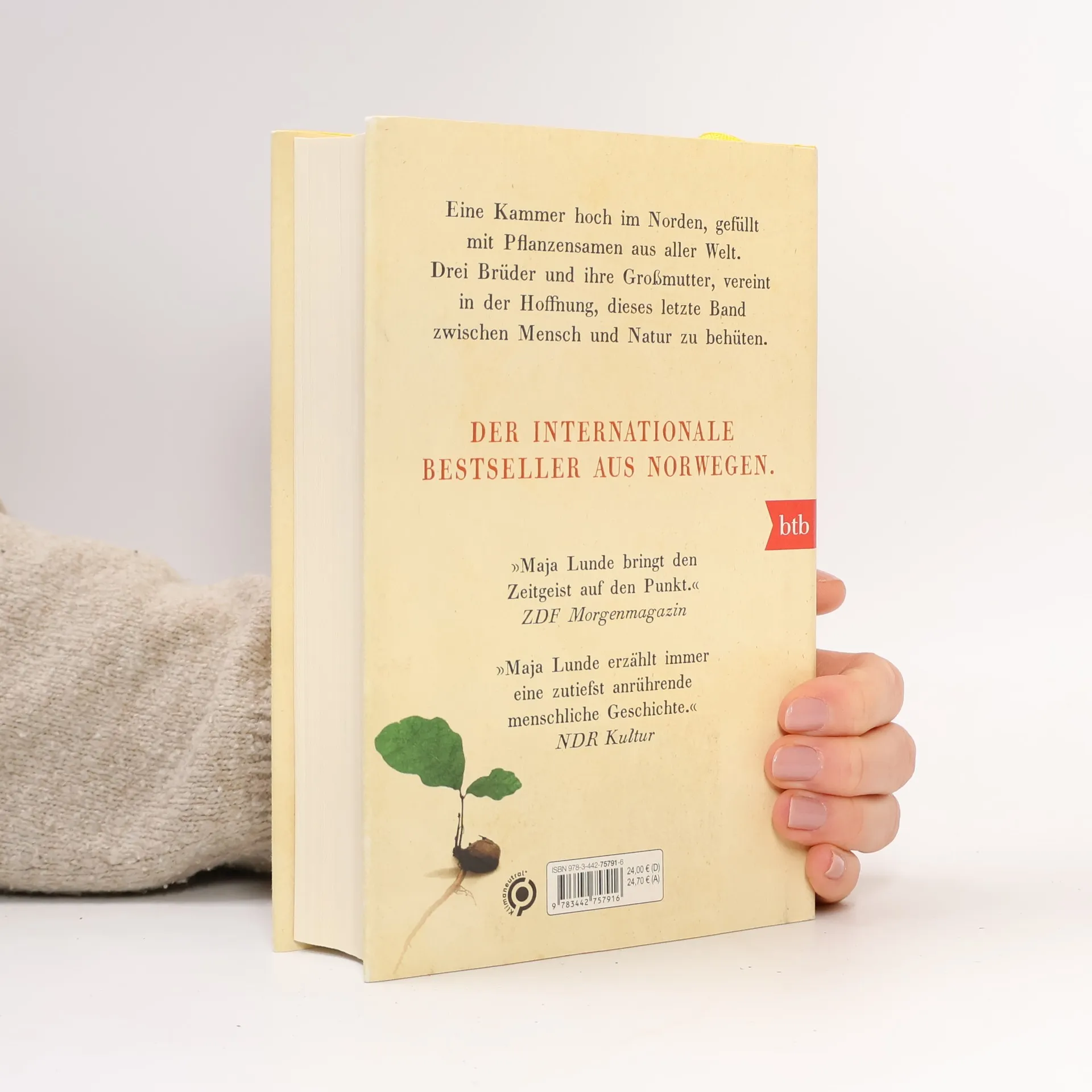Das große Finale des Klimaquartetts Eine Kammer hoch im Norden, gefüllt mit Pflanzensamen aus aller Welt. Drei Brüder und ihre Großmutter, vereint in der Hoffnung, dieses letzte Band zwischen Mensch und Natur zu behüten.Tommy wächst in der kargen Landschaft Spitzbergens mit zwei Brüdern bei seiner geliebten Großmutter auf. Als wichtigste Lebensweisheit gibt sie ihm mit: In einer großflächig zerstörten Welt ist die Saatgutkammer ein Schatz, der mit allen Mitteln beschützt werden muss. Tommy soll diese Aufgabe später von seiner Großmutter übernehmen. In eindrucksvollen Bildern und mit viel Wärme erzählt Maja Lunde von der Bedeutung des Familienzusammenhalts und von unserem Umgang mit der Natur. Sie beschäftigt sich mit den drängenden Fragen unserer Zeit: Wie wurde der Mensch zu einer Spezies, die alles verändert hat? Und sind wir selbst eine bedrohte Art?