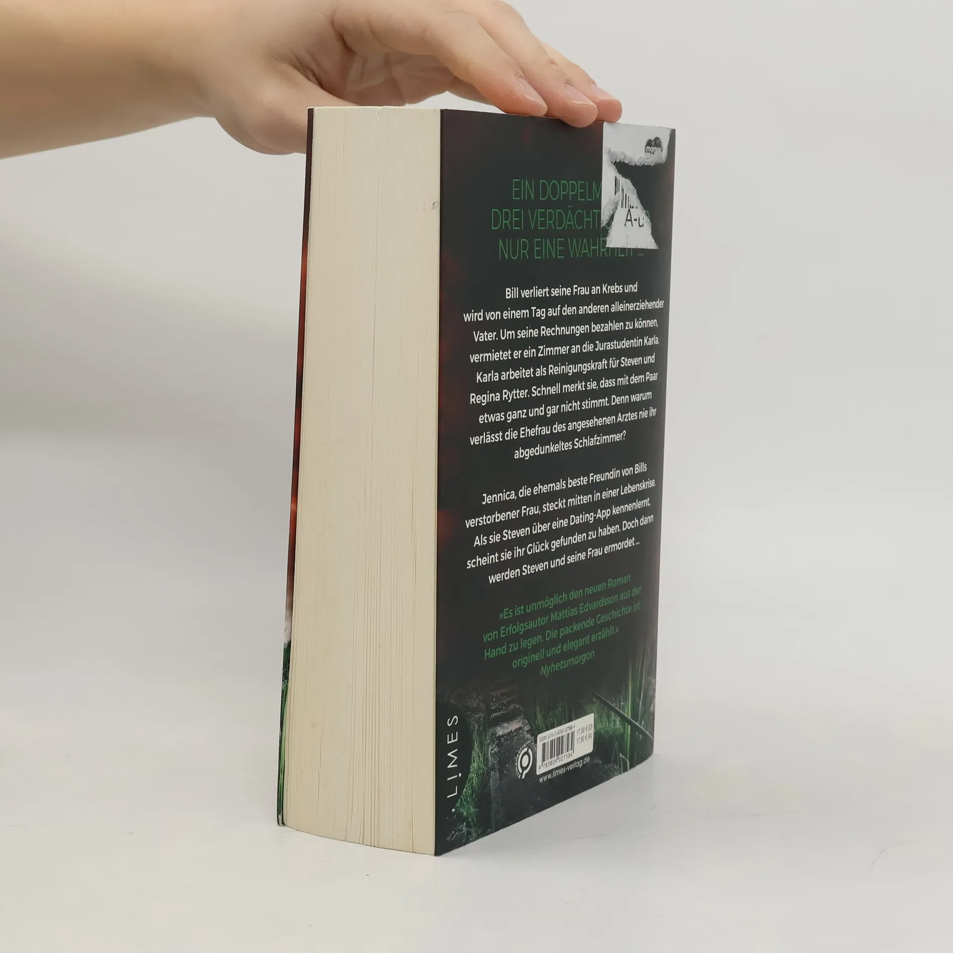 Ein Doppelmord, drei Verdächtige und nur eine Wahrheit – der neue, nervenzerreißend spannende Roman von SPIEGEL-Bestsellerautor Mattias Edvardsson. Bill verliert seine Frau an Krebs und wird von einem Tag auf den anderen alleinerziehender Vater. Um seine Rechnungen bezahlen zu können, vermietet er ein Zimmer an die Jurastudentin Karla.Karla arbeitet als Reinigungskraft für Steven und Regina Rytter. Schnell merkt sie, dass mit dem Paar etwas ganz und gar nicht stimmt. Denn warum verlässt die Ehefrau des angesehenen Arztes nie ihr abgedunkeltes Schlafzimmer?Jennica, die ehemals beste Freundin von Bills verstorbener Frau, steckt mitten in einer Lebenskrise. Als sie Steven über eine Dating-App kennenlernt, scheint sie ihr Glück gefunden zu haben. Doch dann werden Steven und seine Frau tot in ihrem Haus aufgefunden … Sie lieben meisterhaft erzählte skandinavische Spannung? Dann lesen Sie auch die anderen Romane von Mattias Edvardsson.