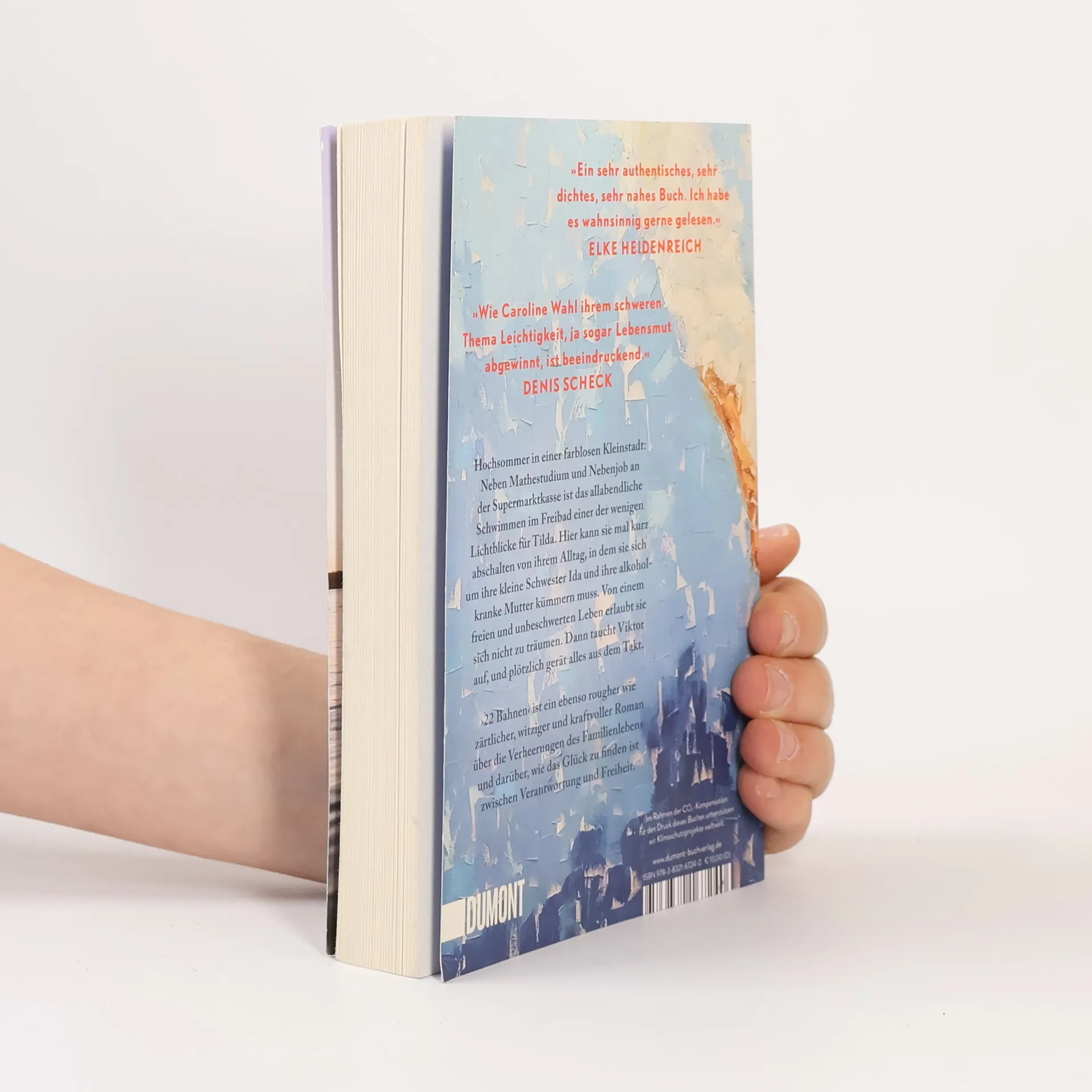 Tildas Tage sind strikt durchgetaktet: studieren, an der Supermarktkasse sitzen, sich um ihre kleine Schwester Ida kümmern und an schlechten Tagen auch um die Mutter. Zu dritt wohnen sie im traurigsten Haus der Fröhlichstraße in einer Kleinstadt, die Tilda hasst. Ihre Freunde sind längst weg, leben in Amsterdam oder Berlin, nur Tilda ist geblieben. Denn irgendjemand muss für Ida da sein, Geld verdienen, die Verantwortung tragen. Nennenswerte Väter gibt es keine, die Mutter ist alkoholabhängig. Eines Tages aber geraten die Dinge in Bewegung: Tilda bekommt eine Promotion in Berlin in Aussicht gestellt, und es blitzt eine Zukunft auf, die Freiheit verspricht. Und Viktor taucht auf, der große Bruder von Ivan, mit dem Tilda früher befreundet war. Viktor, der genau wie sie immer 22 Bahnen schwimmt. Doch als Tilda schon beinahe glaubt, es könnte alles gut werden, gerät die Situation zu Hause vollends außer Kontrolle. ›22 Bahnen‹ ist eine raue und gleichzeitig zärtliche Geschichte über die Verheerungen des Familienlebens und darüber, wie das Glück zu finden ist zwischen Verantwortung und Freiheit. »Caroline Wahl findet das Besondere im Alltäglichen und das Tröstliche im Schmerzvollen. Ein berührendes und feinsinniges Buch, mit dem man gern befreundet wäre.« BENEDICT WELLS »Ich bin durch ›22 Bahnen‹ gerauscht und hellauf begeistert. Herzerwärmend, fein, gnadenlos und richtig schön zugleich.« ALINA BRONSKY