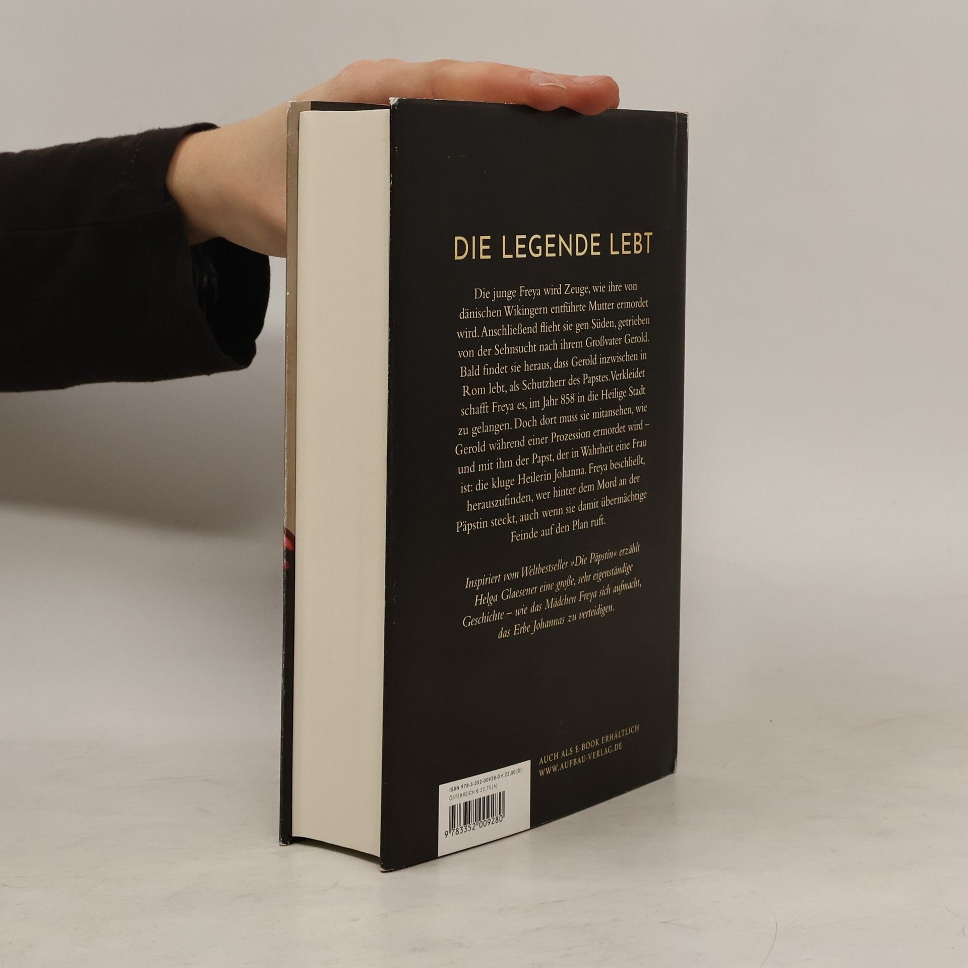 Die Legende lebt Die junge Freya wird Zeuge, wie ihre von dänischen Wikingern entführte Mutter ermordet wird. Anschließend flieht sie gen Süden, getrieben von der Sehnsucht nach ihrem Großvater Gerold. Bald findet sie heraus, dass Gerold inzwischen in Rom lebt, als Schutzherr des Papstes. Verkleidet schafft Freya es, im Jahr 858 in die Heilige Stadt zu gelangen. Doch dort muss sie mitansehen, wie Gerold während einer Prozession ermordet wird – und mit ihm der Papst, der in Wahrheit eine Frau ist: die kluge Heilerin Johanna. Freya beschließt, herauszufinden, wer hinter dem Mord an der Päpstin steckt, auch wenn sie damit übermächtige Feinde auf den Plan ruft. Inspiriert vom Weltbestseller „Die Päpstin“ erzählt Helga Glaesener eine große, sehr eigenständige Geschichte – wie das Mädchen Freya sich aufmacht, das Erbe Johannas zu verteidigen.