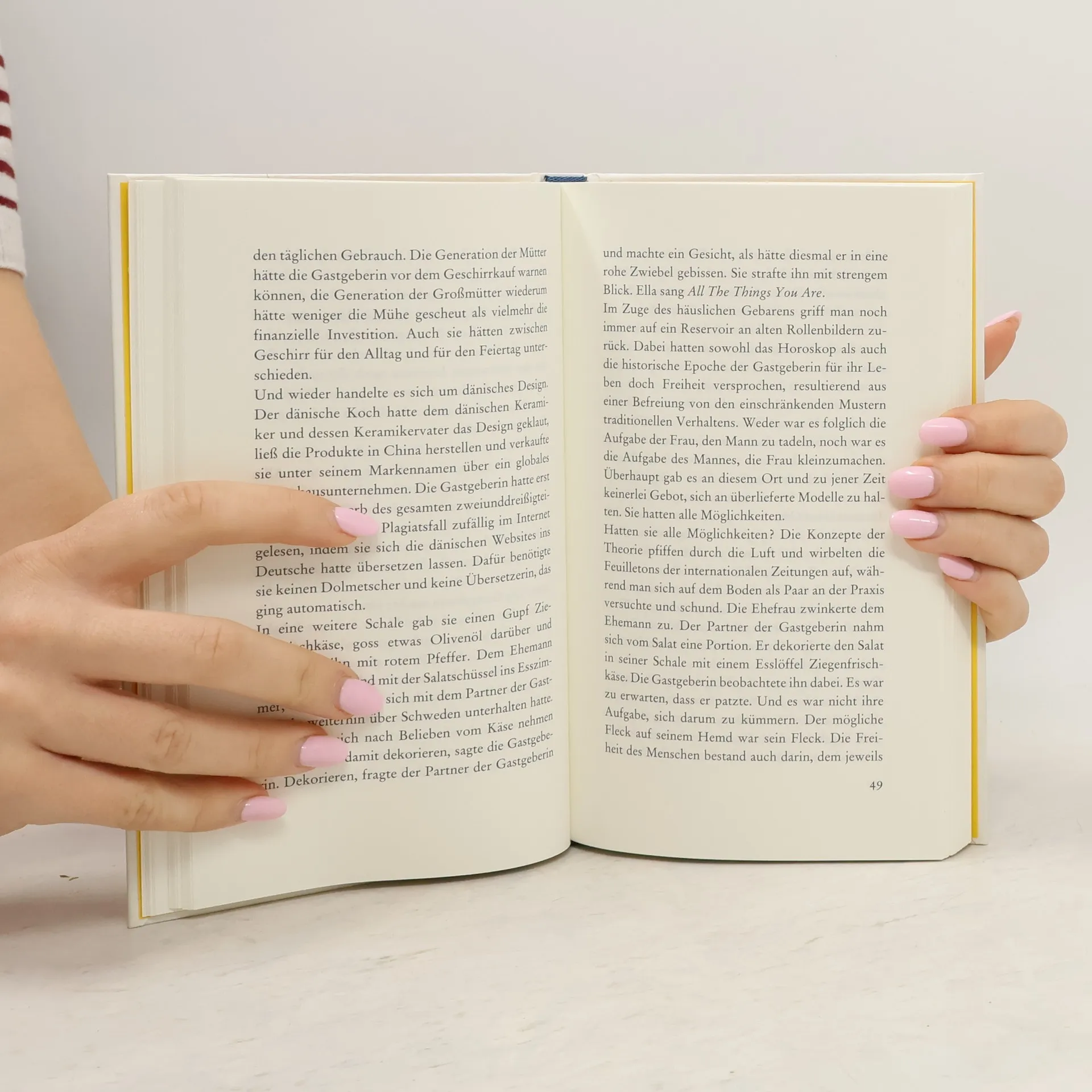 Gastgeberin sein zu können heißt letztlich: erwachsen geworden zu sein. Der Roman eines Abends und einer Einladung zum Essen. Voll mit Rezepten für ein gelungenes Leben und einen misslingenden Abend, der immer wieder neu ansetzt, schlau, witzig, heiter, gleichzeitig begleitet von den unterschwelligen oder ganz offen artikulierten Aggressionen der Beteiligten. In ihren Gesprächen verhandeln sie die ganz großen und kleinen Themen, von den ›Foodporn‹-Bildern im Internet über Kochen, Einkaufen und Wohnen als soziale Praktiken. Zunehmend wird der Abend komischer, tragischer, erotischer – dabei werden einzelne ›heutige‹ Begriffe diskutiert, während die Gastgeberin keine besonders talentierte Gastgeberin ist und sich immer wieder ins falsche Jahrhundert versetzt fühlt. Nebenbei wird in Anekdoten eine Geschichte der Waren, Speisen und des Kochens erzählt.
