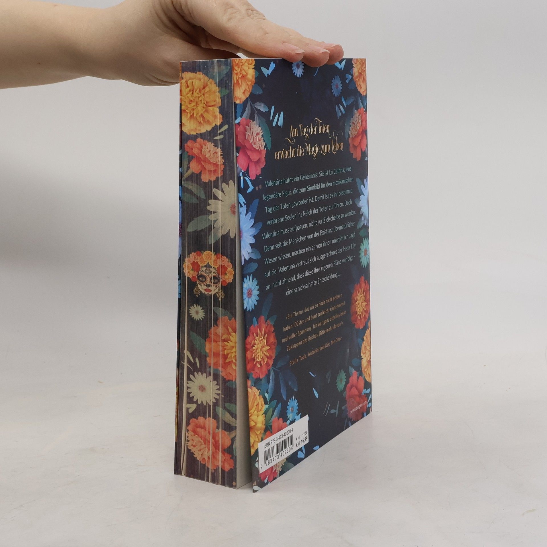 Am Tag der Toten erwacht die Magie zum Leben Valentina hütet ein Geheimnis: Sie ist La Catrina, jene legendäre Figur, die zum Sinnbild für den mexikanischen Tag der Toten geworden ist. Damit ist es ihr bestimmt, verlorene Seelen ins Reich der Toten zu führen. Doch Valentina muss aufpassen, nicht zur Zielscheibe zu werden. Denn seit die Menschen von der Existenz übernatürlicher Wesen wissen, machen einige von ihnen unerbittlich Jagd auf sie. Valentina vertraut sich ausgerechnet der Hexe Lily an, nicht ahnend, dass diese ihre eigenen Pläne verfolgt – eine schicksalhafte Entscheidung … *** Urban Romantasy vor der atmosphärischen Kulisse des Día de los Muertos! Episch. Traumhaft. Magisch! *** Entdecke die fantastisch-romantischen Buchwelten von Sandra Grauer bei Ravensburger: Flowers & Bones Band 1: Tag der Seelen Band 2: Kuss der Catrina Flame & Arrow Band 1: Drachenprinz Band 2: Elfenkriegerin Clans of London Band 1: Hexentochter Band 2: Schicksalsmagie