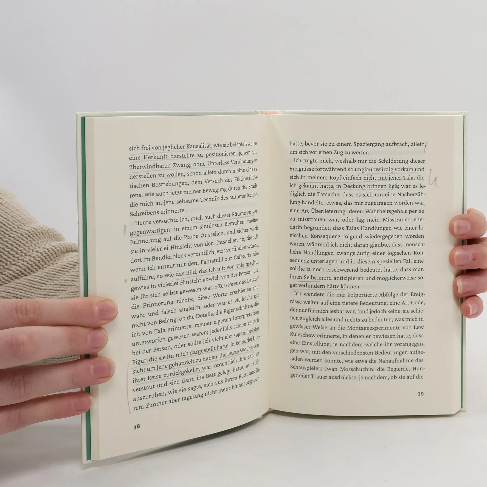 Tala ist tot. Die Tochter einer Iranerin und eines griechischen Gastarbeiters soll sich in Berlin das Leben genommen haben. Ungläubig und überreizt streift unsere Erzählerin – eine junge Regisseurin – durch die Stadt. Mit Tala in der Hauptrolle hätte sie hier ihren ersten Film drehen sollen. Tala war ihre Muse, nach vielen Rückschlägen ihre vielleicht einzige Inspiration. Anfangs bändigt die Bewegung ihre Gedanken. Doch Schritt um Schritt verändert ihr Blick die Umgebung. Die Stadt blättert sich vor ihr auf und offenbart Talas Spuren. Während die Erzählerin ihnen folgt, dringt sie immer tiefer in eine verborgene Geschichte von Originalität und Aneignung vor. Und schließlich in ihre eigene, ihr fremd gewordene Vergangenheit.