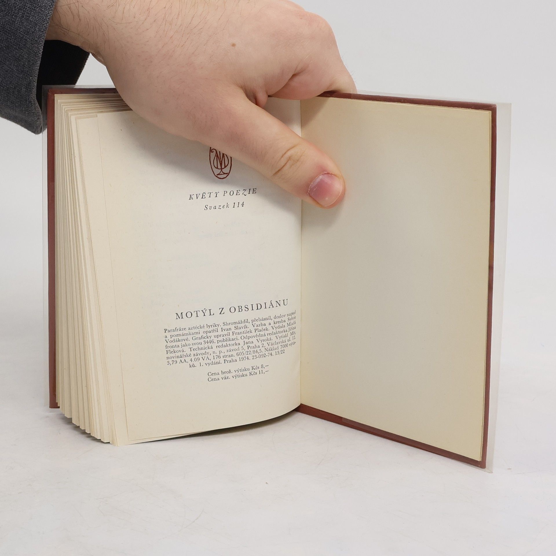 Výbor z aztécké poezie - v níž je cosi jinovatkovitě křehkého a motýlího, ale zároveň teskného, zadírajícího se do duše jako obsidián, lávové sklo - přináší zpěvy anonymních básníků, v nichž básník mluví za sebe o svém lidském údělu; posvátné zpěvy (šoči kvikatl), tj. náboženské hymny, sakrální zpěvy a zpěvy slavnostní; žalozpěvy (ikno-kvikatl), jejichž námětem je prchavost života, vrtkavost přízně bohů, nářky nad zemřelými; hrdinské zpěvy (kvav-kvikatl), tj. zpěvy válečné, ódy opěvující posvátnou válku a hrdinskou smrt; zpěvy o konkvistě, vyjadřující nářky nad pádem a zánikem říše. Připojen je magicky vyznívající popis věcí, který vznikl krátce po konkvistě.