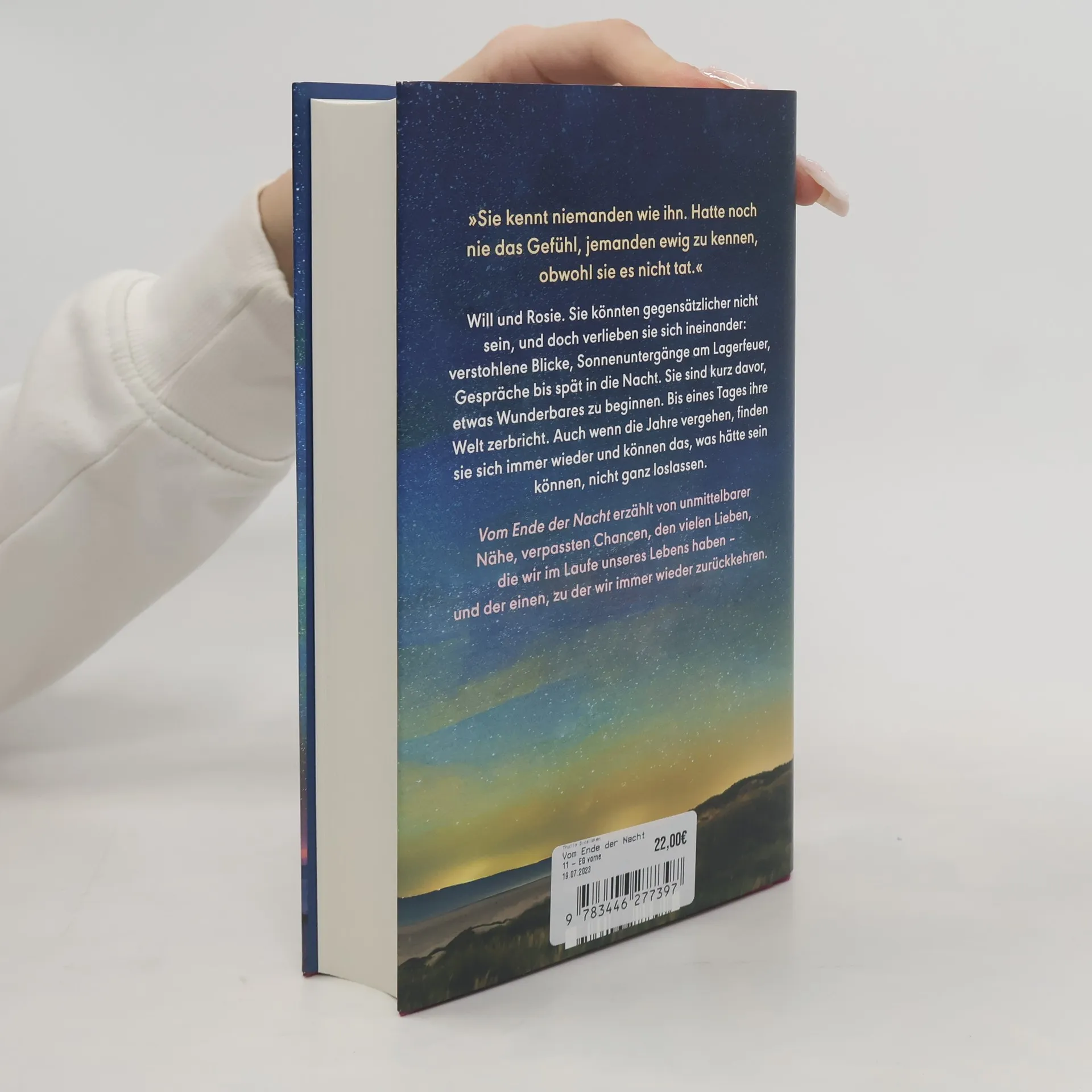 Die aufwühlende und zugleich zärtliche Geschichte zweier Menschen, die nicht anders können als sich immer und immer wieder anzuziehen. Will und Rosie gehören schon jetzt zu den unvergesslichen Liebespaaren der Weltliteratur – ihre Geschichte wird Sie vom Schlafen abhalten. Will und Rosie. Sie könnten gegensätzlicher nicht sein, und doch verlieben sie sich ineinander: verstohlene Blicke, Sonnenuntergänge am Lagerfeuer, Gespräche bis spät in die Nacht. Sie sind kurz davor, etwas Wunderbares zu beginnen. Bis eines Tages ihre Welt zerbricht. Auch wenn die Jahre vergehen, finden sie immer wieder zueinander und können das, was hätte sein können, nicht ganz loslassen. „Vom Ende der Nacht“ erzählt von unmittelbarer Nähe, verpassten Chancen, den vielen Lieben, die wir im Laufe unseres Lebens haben - und der einen, zu der wir immer wieder zurückkehren.