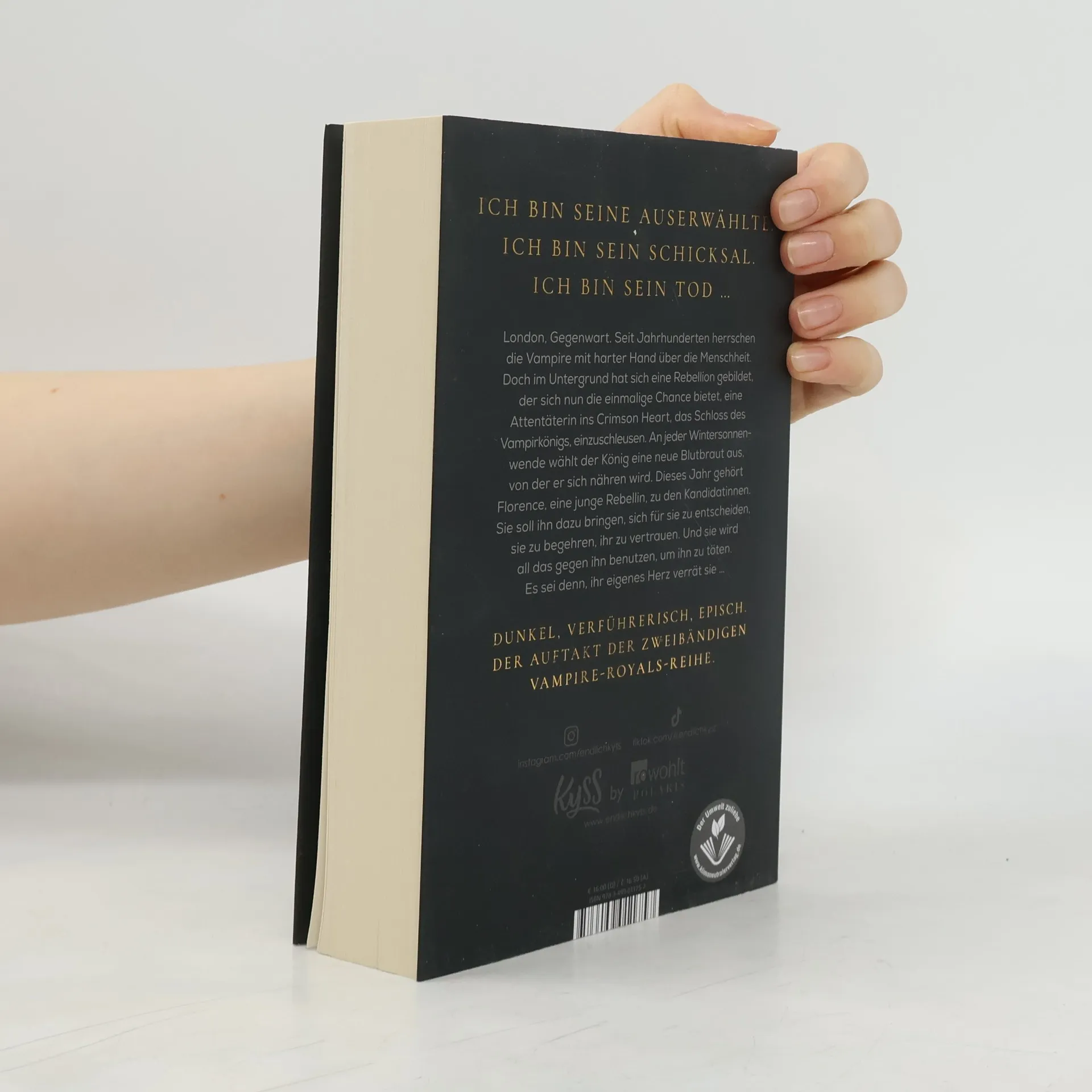 Der Auftakt der zweibändigen Vampire-Royals-Reihe. Für alle Fans von Tracy Wolff und Scarlett St. Clair. Ich bin seine Auserwählte. Ich bin sein Schicksal. Ich bin sein Tod … London, Gegenwart. Seit Jahrhunderten herrschen die Vampire mit harter Hand über die Menschheit. Doch im Untergrund hat sich eine Rebellion gebildet. Eine Gruppe von Menschen, die nicht länger bereit ist, diese Unterdrückung hinzunehmen. Auch Florence ist Teil des Widerstands und wurde von Geburt an auf ihre bevorstehende Aufgabe vorbereitet. Mit ihr hat die Rebellion erstmals die Chance, eine Attentäterin ins Crimson Heart, das Schloss des Vampirkönigs, einzuschleusen. An jeder Wintersonnenwende wählt der König eine neue Blutbraut aus, von der er sich nähren wird. Und dieses Jahr gehört Florence zu den Kandidatinnen. Sie soll ihn dazu bringen, sich für sie zu entscheiden, sie zu begehren, ihr zu vertrauen. Und sie wird all das gegen ihn benutzen, um ihn zu töten. Es sei denn, ihr eigenes Herz verrät sie …