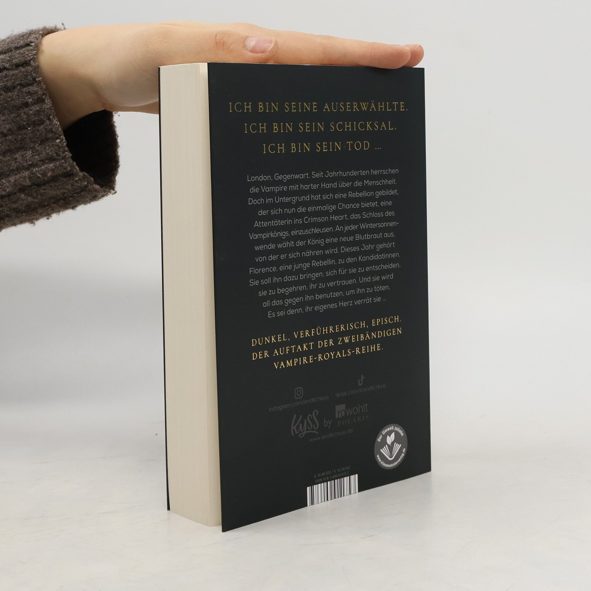 Der Auftakt der zweibändigen Vampire-Royals-Reihe. Für alle Fans von Tracy Wolff und Scarlett St. Clair. Ich bin seine Auserwählte. Ich bin sein Schicksal. Ich bin sein Tod … London, Gegenwart. Seit Jahrhunderten herrschen die Vampire mit harter Hand über die Menschheit. Doch im Untergrund hat sich eine Rebellion gebildet. Eine Gruppe von Menschen, die nicht länger bereit ist, diese Unterdrückung hinzunehmen. Auch Florence ist Teil des Widerstands und wurde von Geburt an auf ihre bevorstehende Aufgabe vorbereitet. Mit ihr hat die Rebellion erstmals die Chance, eine Attentäterin ins Crimson Heart, das Schloss des Vampirkönigs, einzuschleusen. An jeder Wintersonnenwende wählt der König eine neue Blutbraut aus, von der er sich nähren wird. Und dieses Jahr gehört Florence zu den Kandidatinnen. Sie soll ihn dazu bringen, sich für sie zu entscheiden, sie zu begehren, ihr zu vertrauen. Und sie wird all das gegen ihn benutzen, um ihn zu töten. Es sei denn, ihr eigenes Herz verrät sie …
