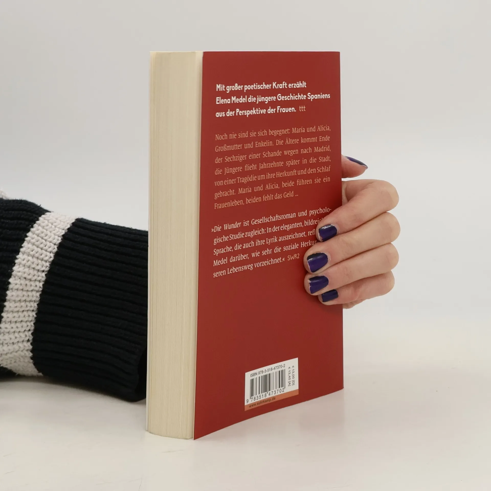 Noch nie sind sie sich begegnet: María und Alicia, Großmutter und Enkelin. Die Ältere kommt Ende der Sechziger einer Schande wegen nach Madrid, arbeitet als Kindermädchen, als Hausangestellte, der komplette Lohn fortan bestimmt für die zurückgelassene, fast unbekannte Tochter. Die Jüngere flieht Jahrzehnte später in die Stadt, von einer Tragödie um ihre Herkunft und den Schlaf gebracht. María und Alicia, beide führen sie ein Frauenleben, beiden fehlt das Geld. Und damit die Zuversicht und das Vertrauen. In sich selbst, ihre Männer, dieses Land, in dem sich alles verändert zu haben scheint, bis auf das eigene Elend. Und plötzlich fordert jede auf ihre Weise die hergebrachte Ordnung heraus. Elena Medel schreibt die jüngere Geschichte Spaniens aus Sicht der vergessenen Hälfte. Die Wunder ist ein eleganter feministischer Bildungsroman über die herrschenden Kräfte, über das Geld, das Begehren, die Mutterliebe, und wie sie als Waffen seit jeher gegen die Frauen verwendet werden.