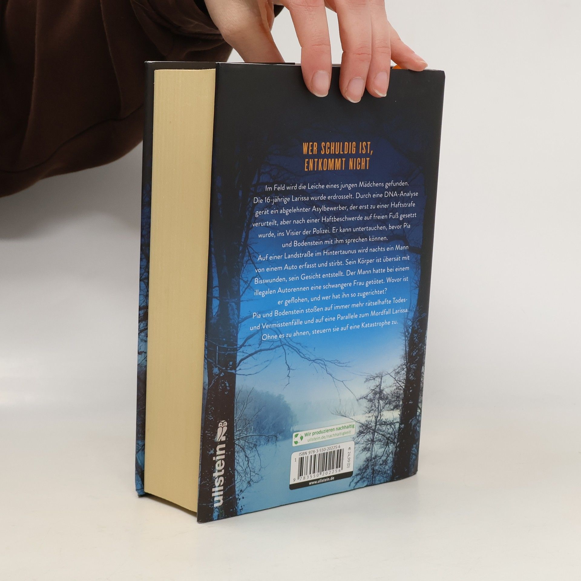 Wer schuldig ist, entkommt nicht Im Feld wird die Leiche eines jungen Mädchens gefunden. Die 16-Jährige Larissa wurde erdrosselt. Durch eine DNA-Analyse gerät ein abgelehnter afghanischer Asylbewerber, der erst zu einer Haftstrafe verurteilt, aber nach einer Haftbeschwerde auf freien Fuß gesetzt wurde, ins Visier der Polizei. Er kann untertauchen, bevor Pia und Bodenstein mit dem Mann sprechen können. Auf einer Landstraße im Hintertaunus wird nachts ein Mann von einem Auto erfasst und getötet. Sein Körper ist übersät mit Bisswunden, sein Gesicht entstellt. Der Mann hatte bei einem illegalen Autorennen eine schwangere Frau getötet. Wovor ist er geflohen und wer hat ihn so zugerichtet? Pia und Bodenstein stoßen auf immer mehr rätselhafte Todes- und Vermisstenfälle und auf eine Parallele zum Mordfall Larissa. Ohne es zu ahnen, steuern sie auf eine Katastrophe zu.