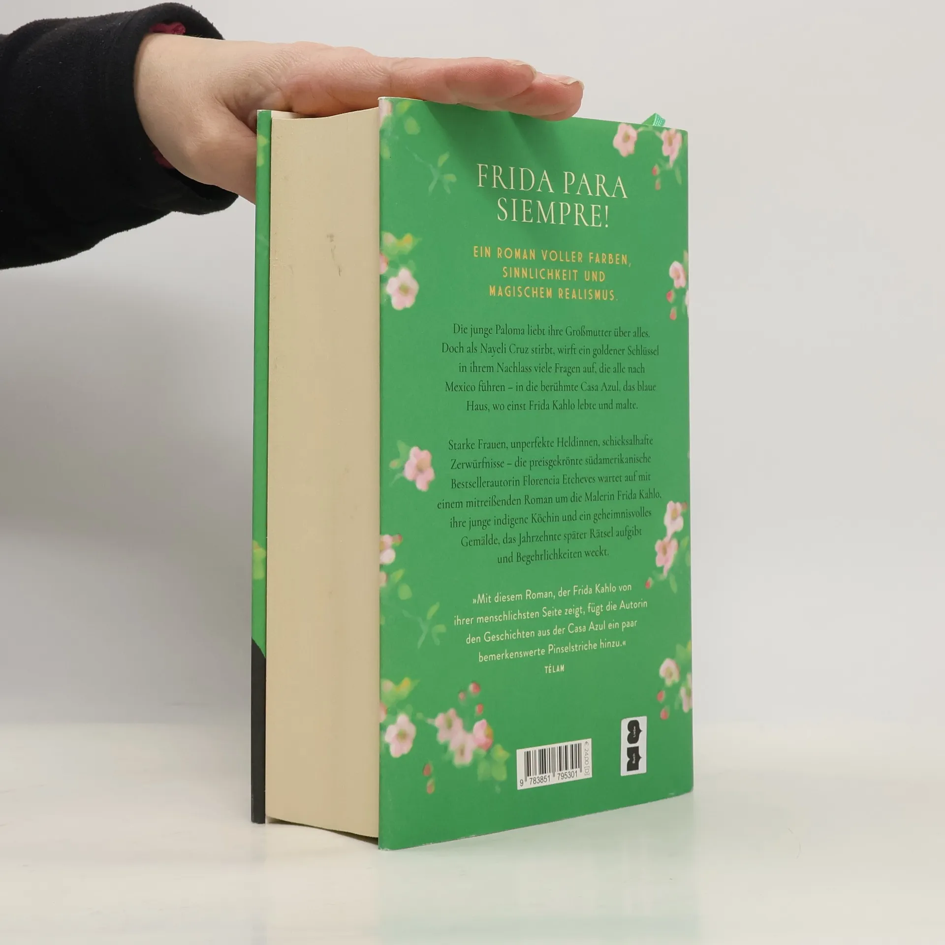 Mexiko, 1939. Die vierzehnjährige Nayeli Cruz flieht vor einer Zwangsheiratsdrohung, die ihre Schwester Rosa bereits getroffen hat. Auf ihrem Weg nach Mexiko-Stadt findet sie in der Casa Azul eine Anstellung als Köchin und wird schnell zur Vertrauten von Frida Kahlo, die nach einem schweren Unfall in Isolation lebt und von Schmerzen geplagt ist. Zwischen Düften und Farben entsteht eine tiefe Freundschaft, die jedoch in einem tragischen Zerwürfnis endet. Argentinien, 2018. Paloma Cruz steht am Sterbebett ihrer Großmutter Nayeli und ahnt nichts von dem Geheimnis ihrer Vergangenheit. Im Nachlass der 92-jährigen Nayeli entdeckt sie ein rätselhaftes Gemälde, das sie als junge Frau beim Baden zeigt. Als Kunsträuber versuchen, das Bild zu stehlen, erkennt Paloma dessen unschätzbaren Wert und begibt sich auf die Suche nach der Wahrheit. Dieser farbenprächtige, sinnliche Roman voller magischem Realismus feiert das Leben und den Día de Muerto, an dem in Mexiko mit einer Explosion von Farben und lebensbejahender Freude der Toten gedacht wird.