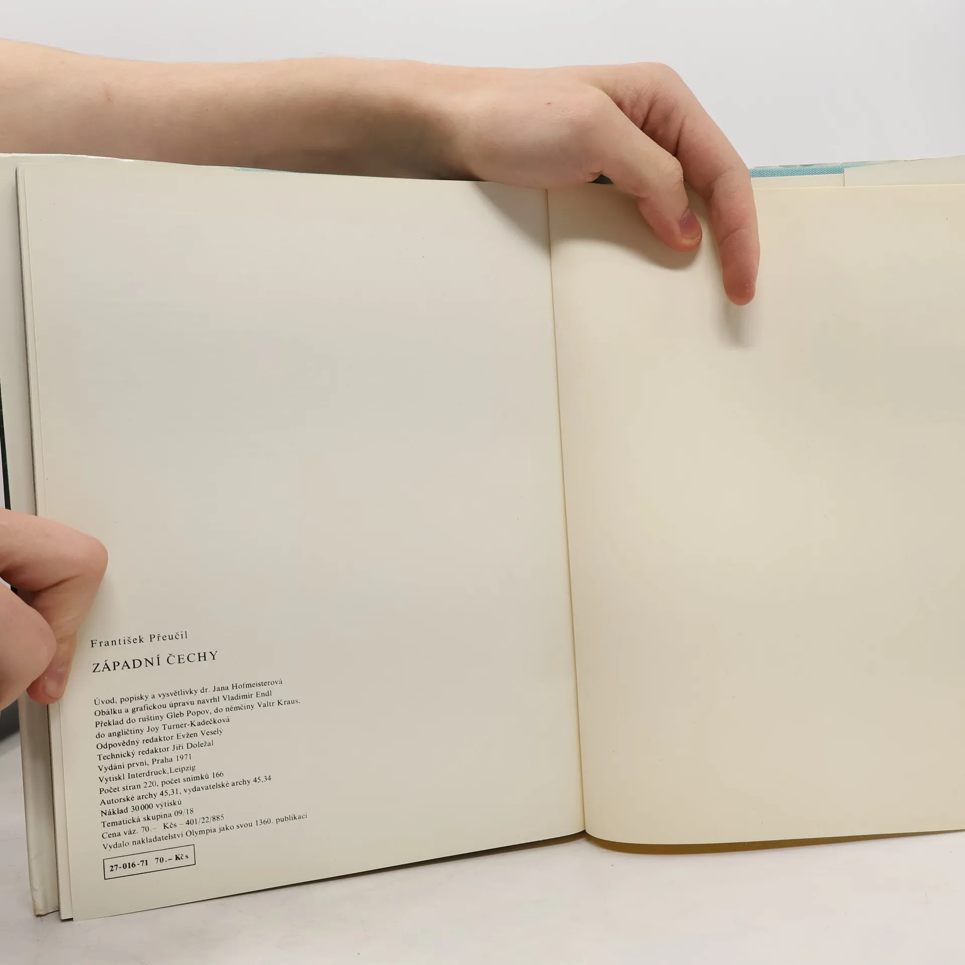 Obrazová publikace. Úvod, popisky a vysvětlivky Jana Hofmeisterová. Snímky krajin a detailů přírody se střídají se záběry z měst, které se zaměřují na celé čtvrtě i jejich dílčí bohatství. Kromě 16 barevných je 150 reprodukcí černobílých. Exteriéry i interiéry hradů a zámků irázovitá místa ve vesnických obcích, díla lidských rukou i tvary flóry, pamětihodné stavby i připomínky současného dění, to vše dokládá členitost a pestrost západočeské oblasti.