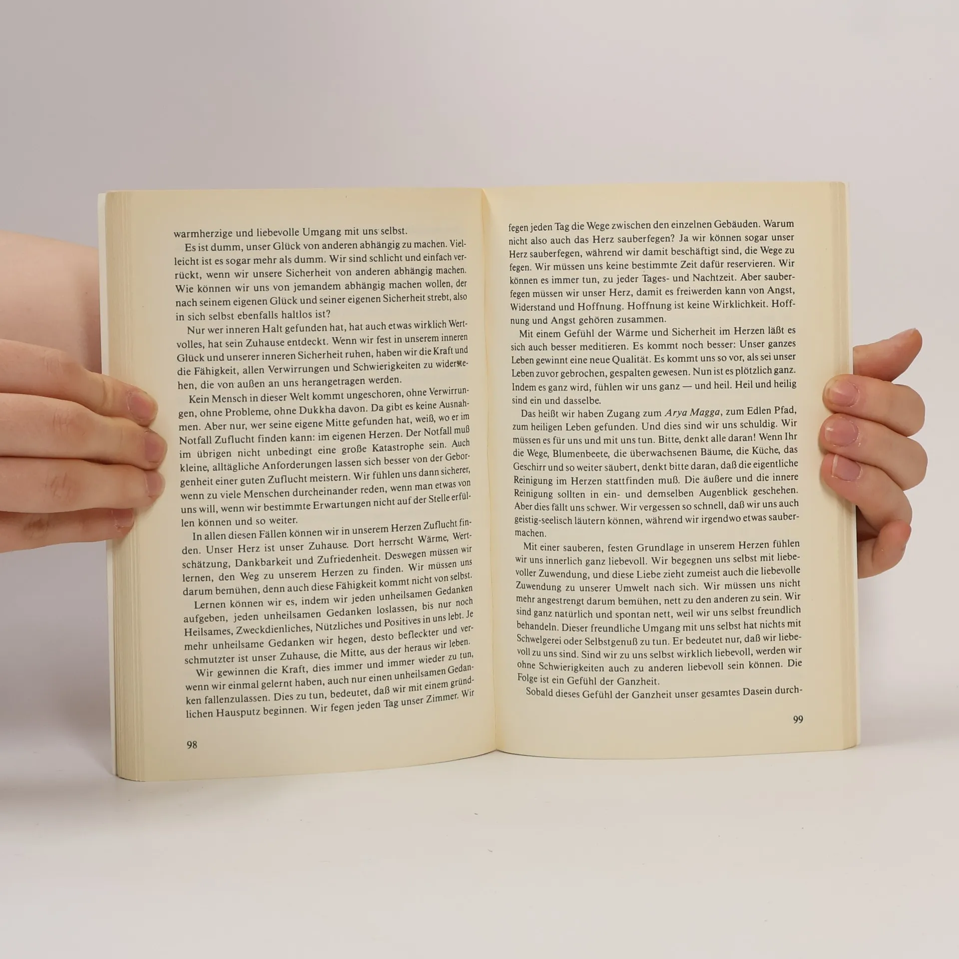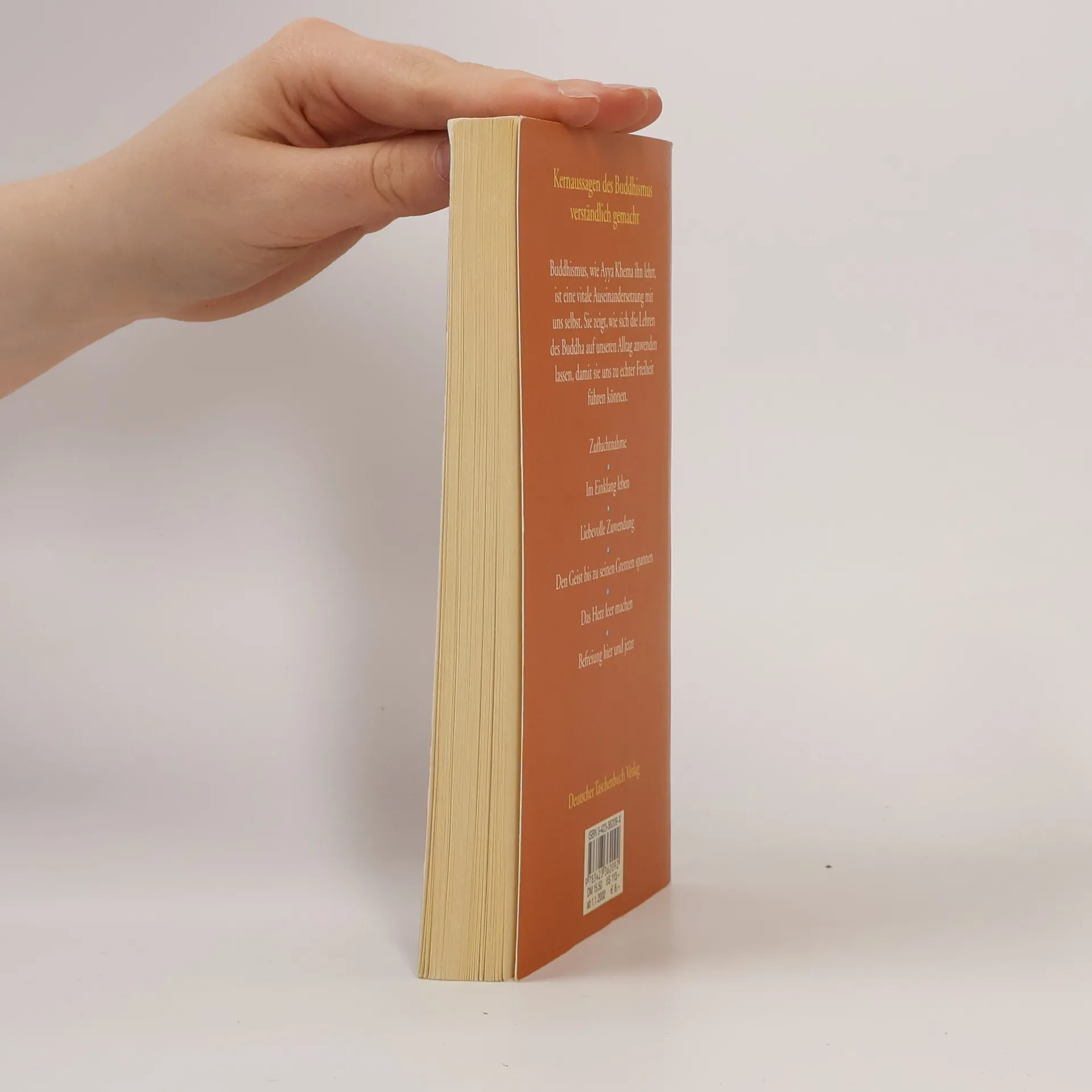 In diesem Buch führt uns Ayya Khema zu den Kernfragen unseres Lebens: Wie kann die buddhistische Lehre uns dabei helfen, Sorgen, Schwierigkeiten und Ängste zu überwinden und die Fesseln unserer Gewohnheiten zu sprengen und Befreiung zu erfahren - und sei es nur für einen Augenblick? Die Beobachtung unserer Reaktionen zeigt uns, dass sie vorprogrammiert sind. Wenn wir uns aber um Achtsamkeit bemühen, können wir unser Programm durchschauen und uns aus den Reaktionsketten lösen. Diese Erfahrung macht uns freier und zufriedener. Ayya Khema versteht es, zentrale Aussagen des Buddhismus klar zu vermitteln und ermutigt uns, Wege echter Freiheit zu betreten und uns selbst eine Insel der Zufriedenheit und des inneren Glücks werden zu lassen. "Wie können wir uns von störenden Gewohnheiten lösen und Gelassenheit lernen? Wie können wir in Harmonie mit uns selbst und anderen leben? Zufriedenheit hat nur eine Heimat: unser eigenes Herz - und dies gilt es zu kultivieren." (Ayya Khema)