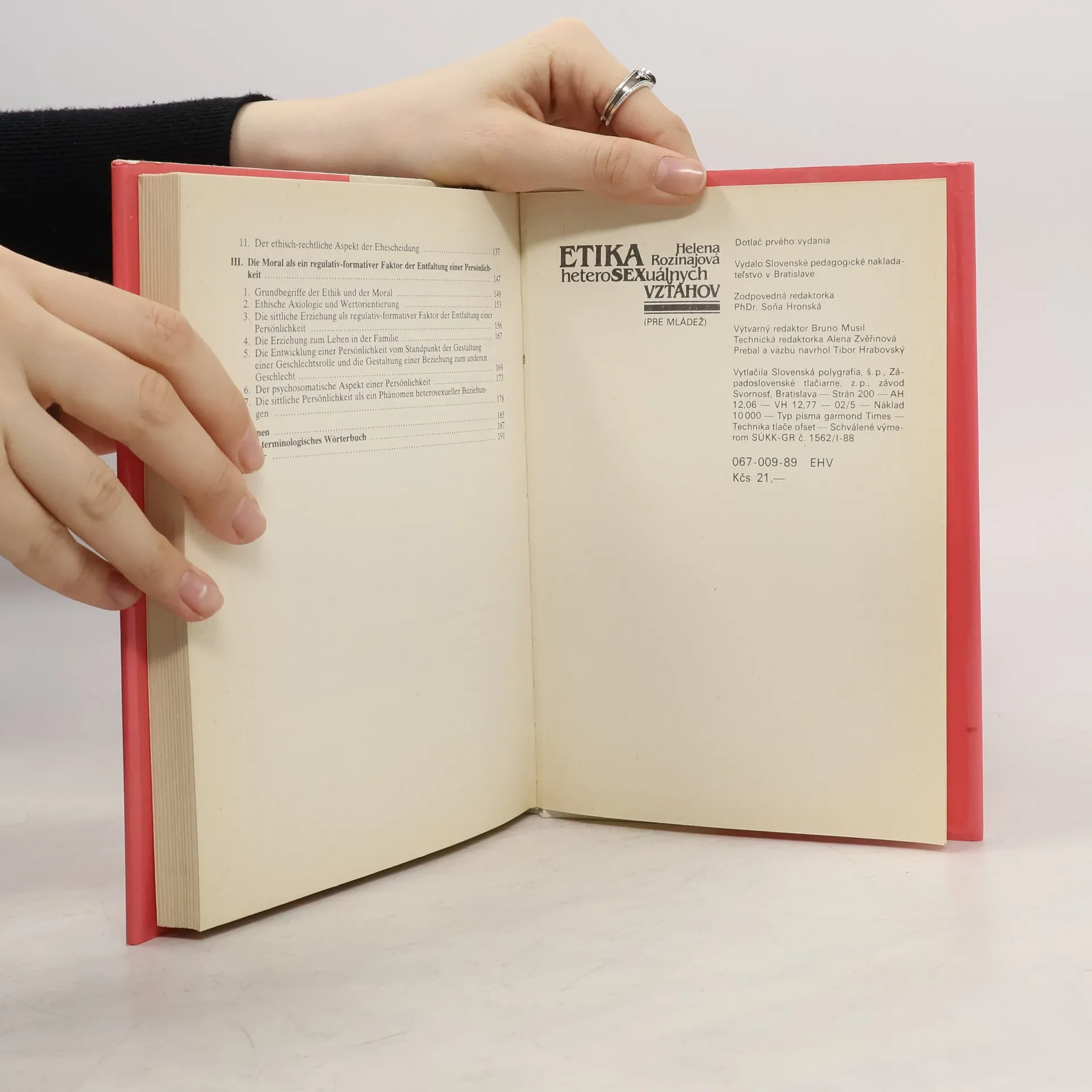 Analýza závažných súčasných problémov heterosexuálnych vzťahov pred manželstvom aj počas neho podľa princípov socialistickej morálky. Prvá kapitola sa venuje predmanželskému pohlavnému životu, druhá vzťahu muža a ženy v manželstve, tretia podáva najzákladnejšie teoretické otázky etiky heterosexuálnych vzťahov.