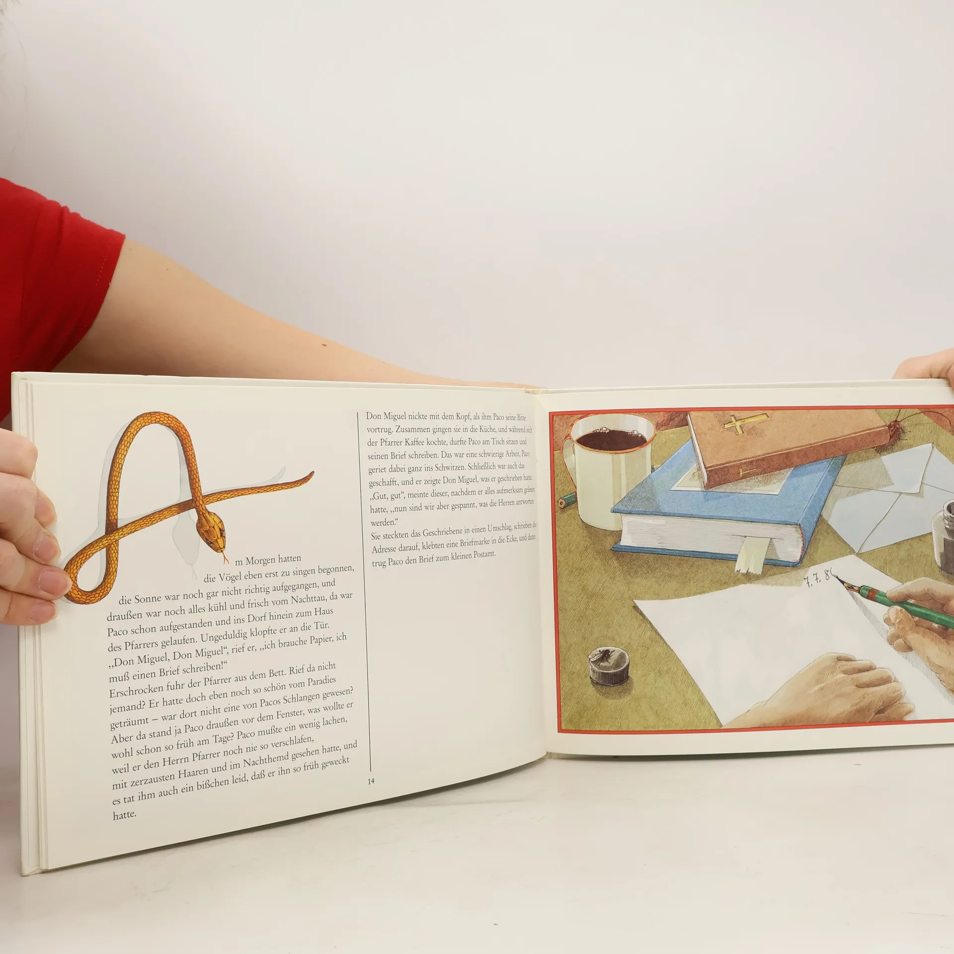 Der Indiojunge Paco kennt und liebt die Schlangen des Urwaldes. Ein Pfarrer lehrt ihn lesen und schreiben, so dass Paco mit Schlangenexperten in Verbindung treten kann, die ihn schliesslich zu einer Konferenz einladen. (Ab 5).