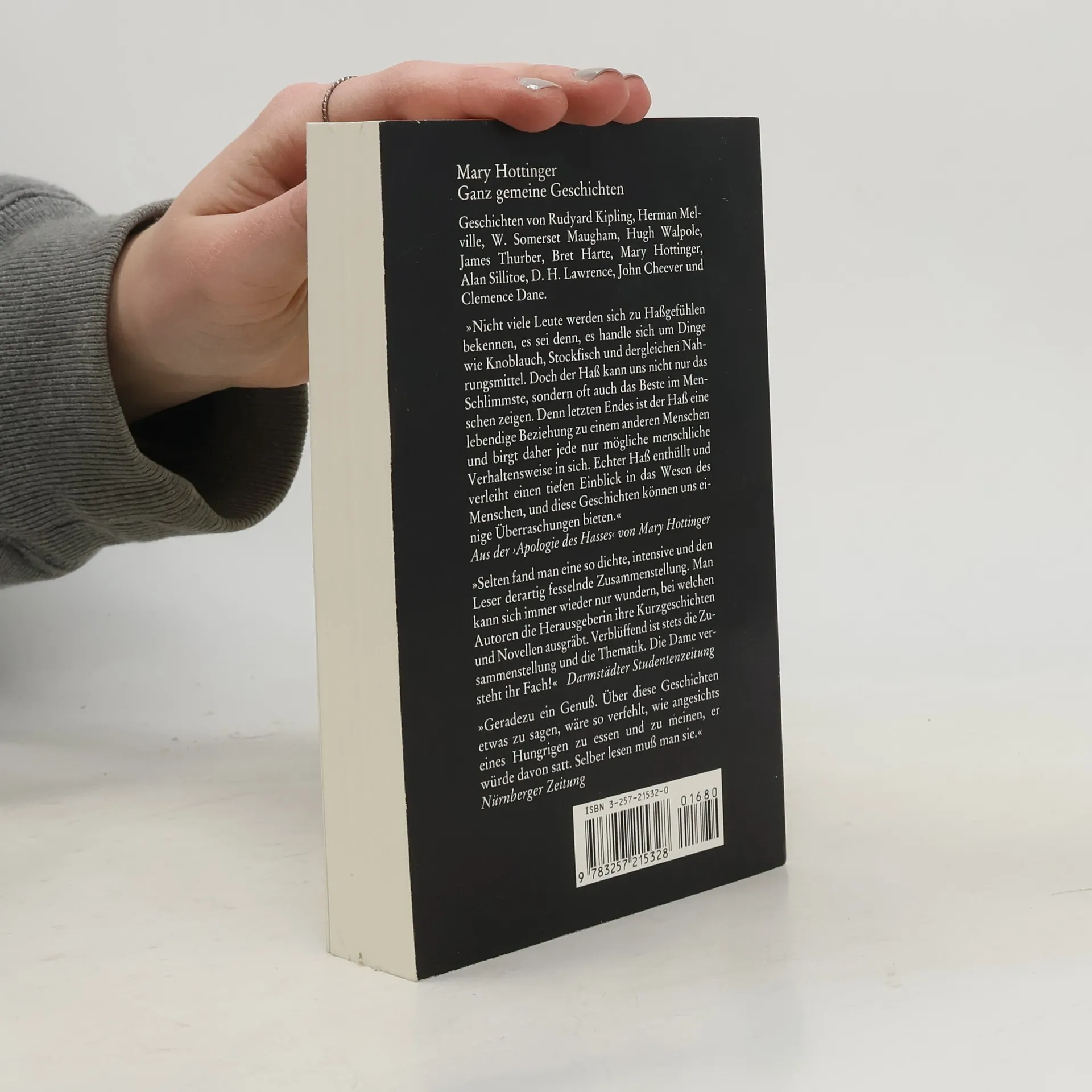 Mary Hottinger über ihre Beweggründe, diese Anthologie zusammenzustellen: „Nicht viele Leute werden sich zu Haßgefühlen bekennen, es sei denn, es handle sich um Dinge wie Knoblauch, Stockfisch und dergleichen Nahrungsmittel. Doch der Haß kann uns nicht nur das Schlimmste, sondern oft auch das Beste im Menschen zeigen. Denn letzten Endes ist der Haß eine lebendige Beziehung zu einem anderen Menschen und birgt daher jede nur mögliche menschliche Verhaltensweise in sich. Echter Haß enthüllt und verleiht einen tiefen Einblick in das Wesen des Menschen, und diese Geschichten können uns einige Überraschungen bieten.“