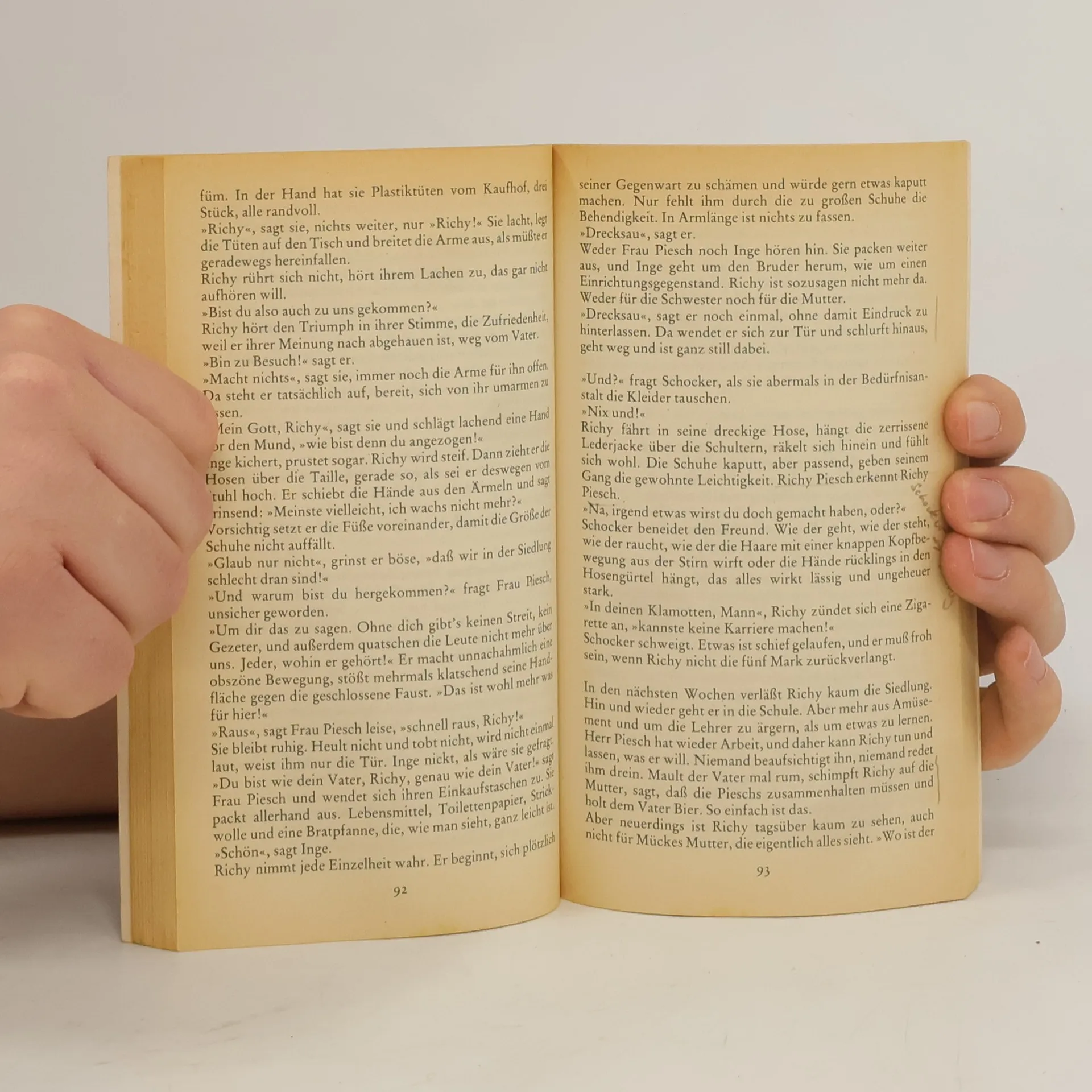 Was aus der Siedlung kommt, sagen die Leute, das kann ja nichts Gutes sein. Und deshalb geht auch soviel schief, deshalb möchte jeder gern abhauen, die große Flatter machen. Das möchten auch Schocker und Richy, die beiden Jungen aus den in Baracken zusammengepferchten, zerrütteten Familien in der menschenunwürdigen Berliner Obdachlosensiedlung, aber alles geht eben schief. Ihre Ausbruchsversuche scheitern ebenso wie die Erfüllung ihrer Sehnsucht nach Liebe und menschlicher Wärme. Am vorläufigen Ende steht die Kriminalität und das Gefängnis und Richys tränentrotzige Wut: »Eines Tages werde ich alle fertigmachen.« Nur für Schocker zeigt sich ein Funken von Hoffnung.