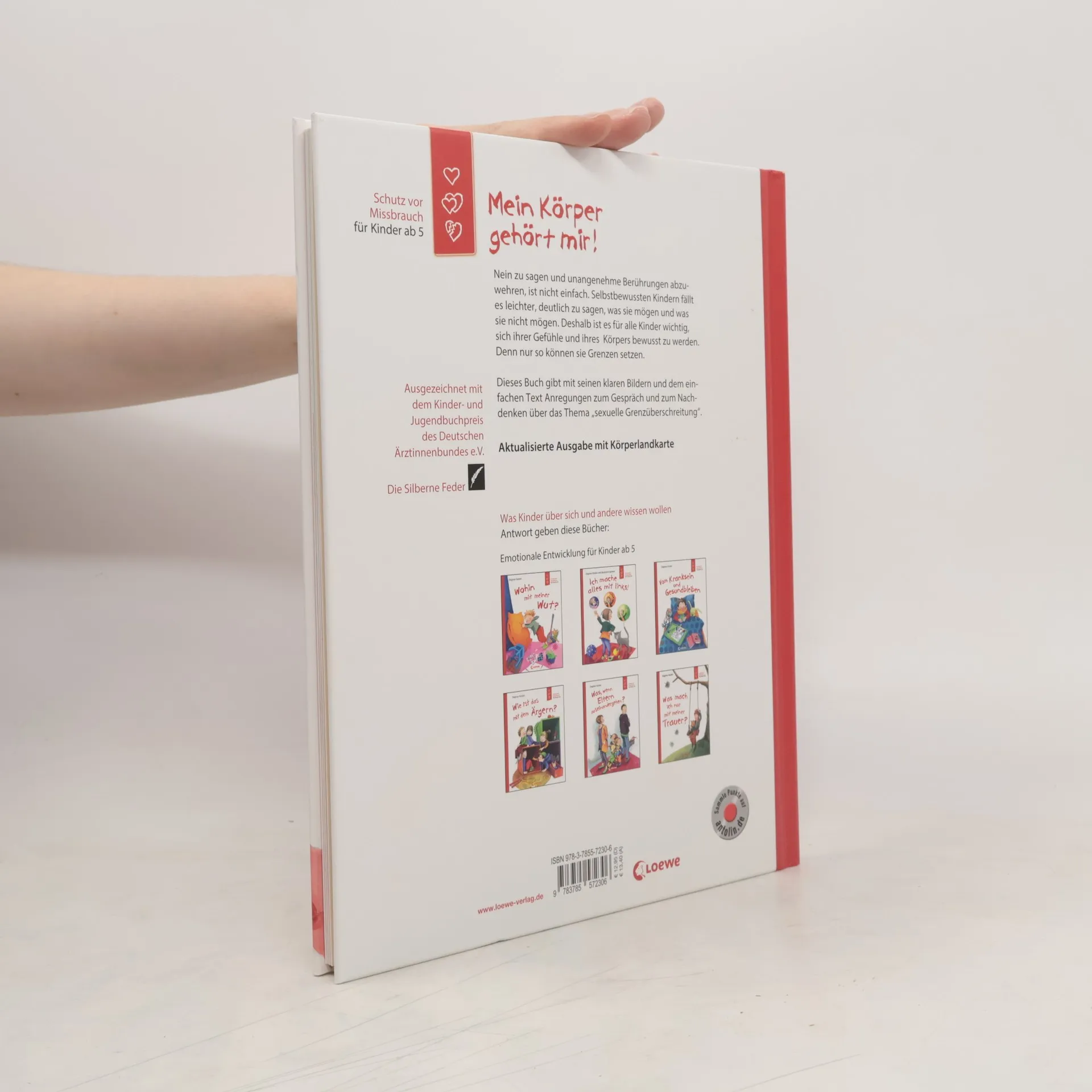 Das Buch ist bei deiner Buchhandlung vor Ort und bei vielen Online-Buchshops erhältlich! + Fördert die emotionale Entwicklung von Kindern + Wichtige Sachbücher + Durchgehend detailreich farbig illustriert + Leicht verständliche Texte + Großformatiges Hardcover + Mit Körperlandkarte + 'Nein' zu sagen und unangenehme Berührungen abzuwehren, ist nicht einfach. Selbstbewussten Kindern fällt es leichter, deutlich zu sagen, was sie mögen und was sie nicht mögen. Deshalb ist es für alle Kinder wichtig, sich ihrer Gefühle und ihres Körpers bewusst zu werden. Denn nur so können sie Grenzen setzen. Die klare Botschaft der Bilder, der einfache Text und die beiliegende Körperlandkarte bieten Anregungen zum Gespräch und zum Nachdenken über das wichtige Thema sexuelle Grenzüberschreitung. Ausgezeichnet mit dem Kinder- und Jugendbuchpreis des Deutschen Ärztinnenbundes e. V., „Die Silberne Feder“ Dagmar Geisler , Bestsellerautorin und Expertin für Kinderentwicklung, schreibt seit über 25 Jahren Sachbücher, die bei der emotionalen Entwicklung von Kindern helfen. Einfühlsam und kindgerecht behandelt sie schwierige Themen wie Aufklärung und sexuelle Grenzüberschreitung und unterstützt so Eltern und Kinder dabei, darüber zu reden.