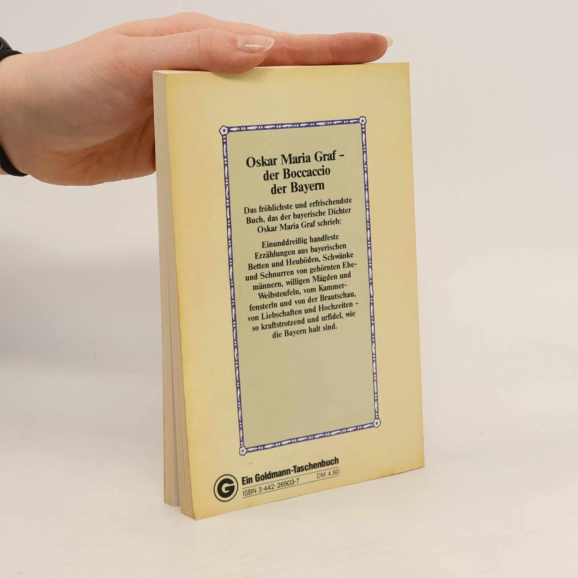 Oskar Maria Graf erlernte das väterliche Bäckerhandwerk, lief von zu Hause fort und übte wandernd vielerlei Befufe aus. Nach dem ersten Weltkrieg kehrte er nach München zurück und nahm an der revolutionären Bewegung teil. Er war Mitarbeiter des Simplicissimus, wo er seine ersten Bauerngeschichten veröffentlichte. Aus ihnen stellte er diese Schwanksammlung, Das bayrische Dekameron (1927) zusammen, die wie seine Kalendergeschichten, (1929) und sein Roman Das Leben meiner Mutter (1940) das bayrische Dorfmilieu in realistischer Sprache ohne jede Schönfärberei wiedergibt. In den Erzählungen des Großen Bauernspiegels (1962) weitet sich das Thema zur Darstellung des bäuerlichen Menschen schlechthin. Oskar Maria Graf lebte von 1938 bis Juni 1967 in New York.