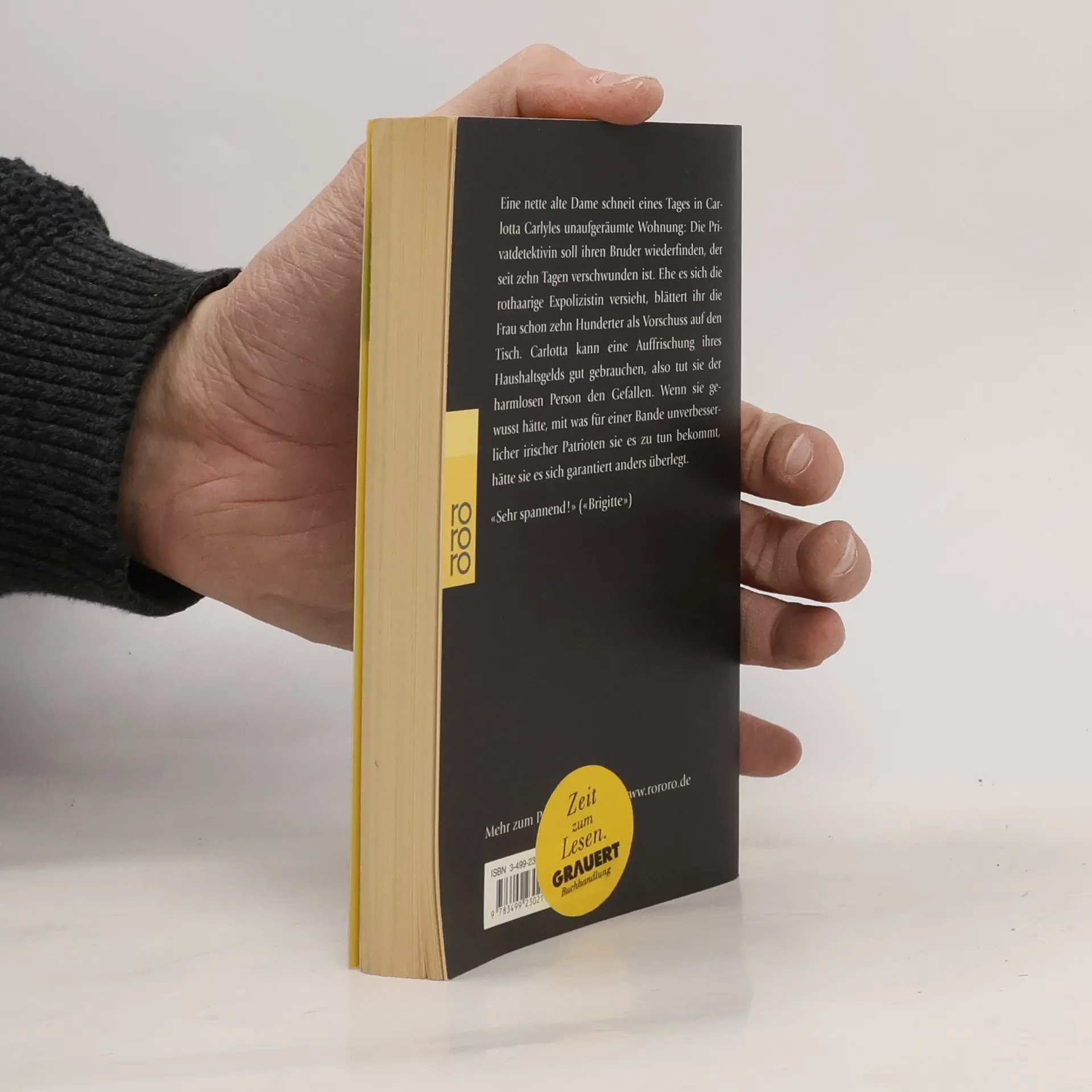Eine nette alte Dame schneit eines Morgens in Carlottas unaufgeräumte Wohnung: Die Privatdetektivin soll ihren Bruder wiederfinden, der seit zehn Tagen verschwunden ist. Ehe es sich die langbeinige Expolizistin versieht, blättert ihr die Frau schon zehn Hunderter als Vorschuss auf den Tisch. Carlotta kann eine Auffrischung ihres Haushaltsgeldes gut gebrauchen, also tut sie der harmlosen Person den Gefallen. Wenn sie gewusst hätte, mit was für einer Bande unverbesserlicher irischer Patrioten sie es zu tun bekommt, hätte sie es sich vielleicht anders überlegt...