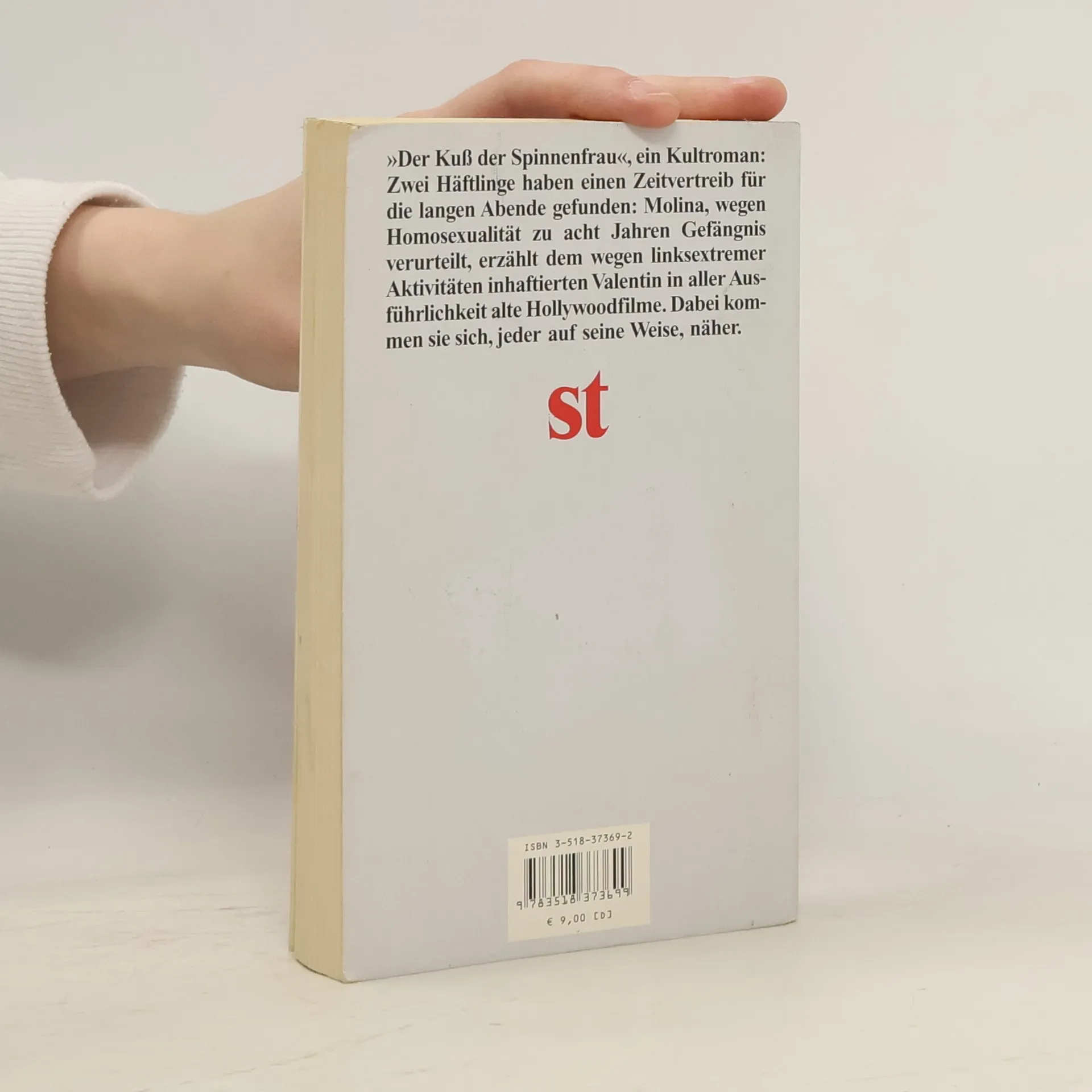 Zwei Häftlinge, Zellengenossen, haben einen Zeitvertreib für die langweiligen Abende gefunden: Molina, der wegen Päderastie zu acht Jahren Gefängnis verurteilt ist, erzählt dem aufgrund linksextremer Aktivitäten inhaftierten Valentín Arregui in aller Ausführlichkeit alte Hollywood- und Ufafilme. Als Arregui medikamentös verdorbenes Essen erhält, das seinen physischen und moralischen Widerstand brechen soll, pflegt ihn Molina. Mit zunehmender körperlicher Schwäche verringert sich Valentíns Unvermögen, Dienste anzunehmen, die eigene Abhängigkeit anzuerkennen, Angst zu verraten, dankbar zu sein. Er begreift, daß Molina ihn liebt, und gibt dieser Liebe Antwort. Puig hat sich in diesem fast nur in direkter Rede geschriebenen Roman zwei Themen gestellt. Er schildert Terror und Willkür der Polizei (der Roman war in Argentinien verboten und führte zu Puigs Ausweisung) und gibt eine durch ausführliche wissenschaftliche Fußnoten unterstützte konkrete Darstellung homosexueller Liebe. Ohne den "klassischen" Helden, den Revolutionär, zu schmälern, macht Puig deutlich, daß er eine zweite, menschlichere Art des Heldentums schätzt, ein nicht der abstrakten Idee, sondern dem konkreten Mitmenschen geltendes äußerstes Opfer.