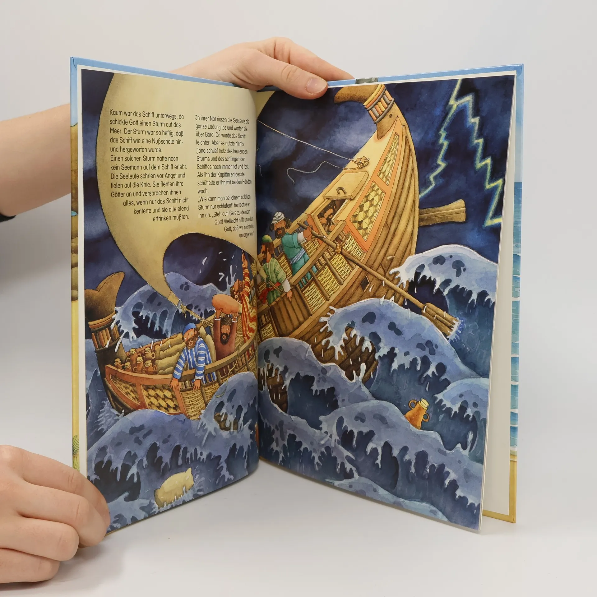 Rolf Krenzer erzählt hier die Geschichte vom Propheten Jona, der vor Gott davonläuft, weil er nicht nach Ninive gehen will. Doch ein großer Fisch verschluckt ihn und bringt ihn zurück. Jona nimmt nun seine Aufgabe an, und in Ninive erlebt er staunend, wie eine große heidnische Stadt auf sein Wort, Gottes Wort hört und umkehrt. Rolf Krenzers Texte und die wunderschönen Illustrationen von Constanza Droop führen mitten hinein in die Welt der Bibel.