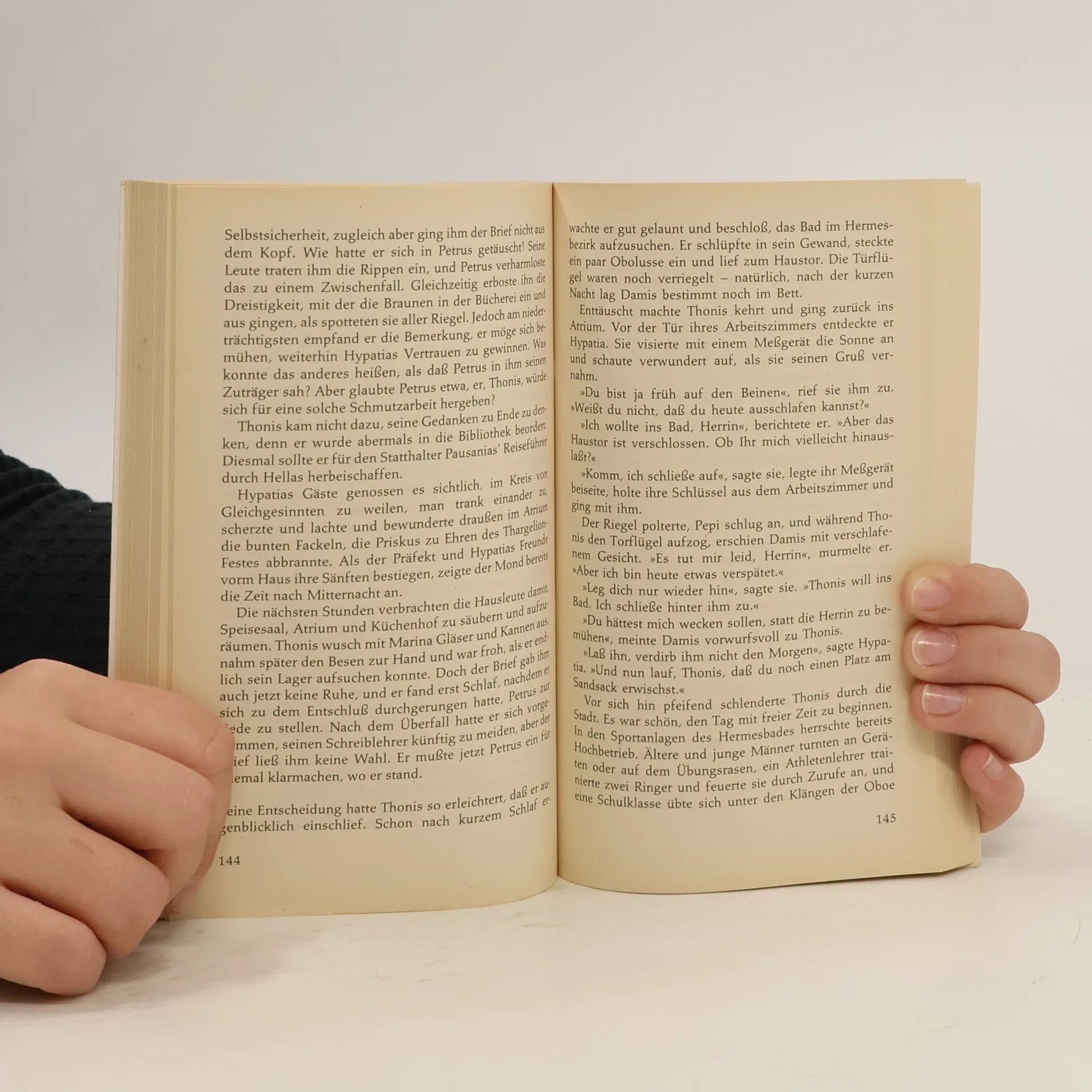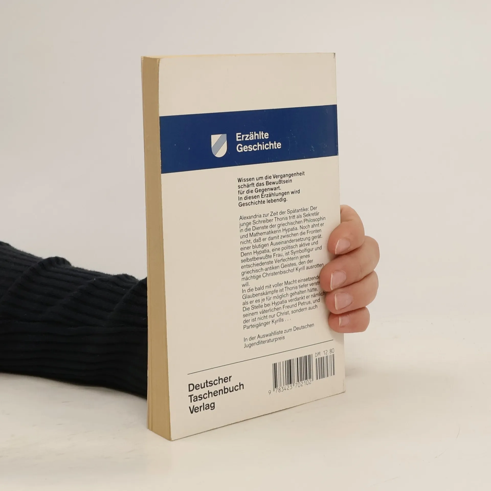 Die spannende Geschichte einer außergewöhnlichen Frau, die um das Jahr 400 in Alexandria lebte. Ihr Schicksal wird aus der Sicht des jungen Thonis geschildert. Ägypten, 400 nach Christus: "Heute ist dein letzter Tag", liest Thonis auf dem Papyruszettel, und er weiß, die Drohung ist ernst gemeint. Das Leben in Alexandria hat er sich anders vorgestellt, mit neuen Freunden, mit mehr Zeit für sich und seine Gedichte. Aber seit er in Hypatias Dienste getreten ist, überschlagen sich die Ereignisse. Hypatia ist eine außergewöhnliche Frau. Selbstbewusst, hochgebildet und politisch engagiert, fordert sie Bewunderung, aber auch Feindschaft heraus.