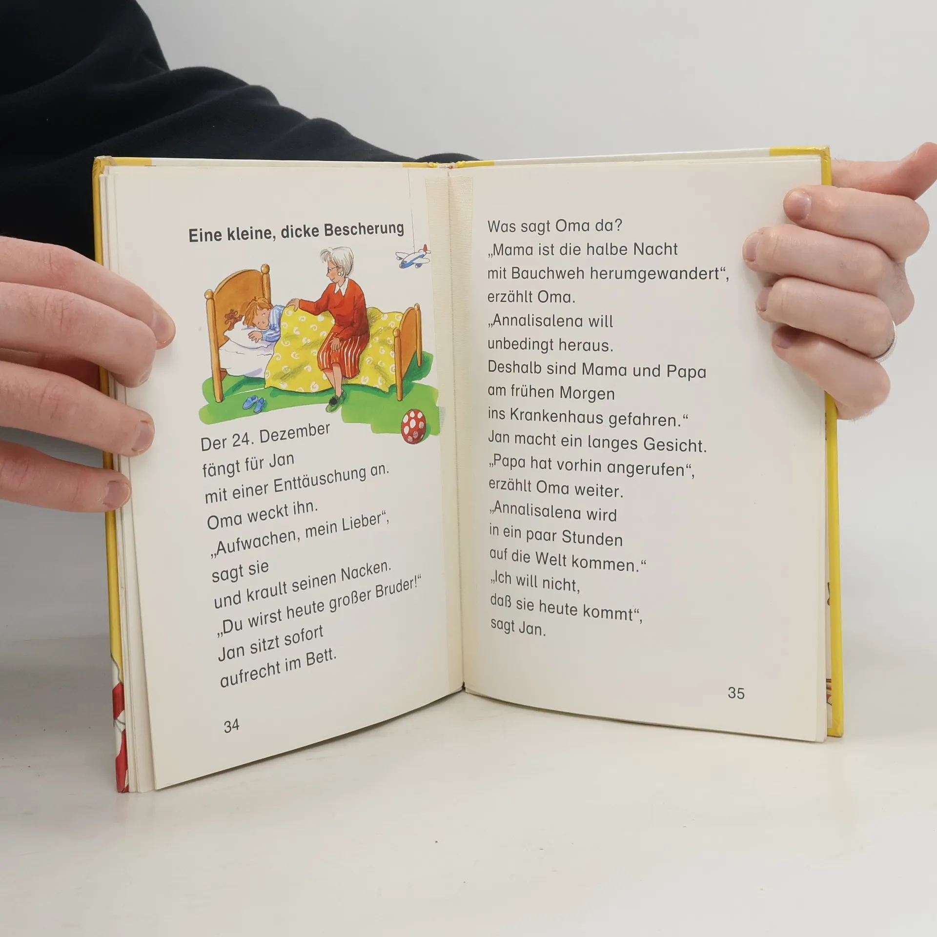 Jan wird ein Schwesterchen bekommen. Er freut sich sehr darauf. Nur soll es nicht gerade an Weihnachten kommen. Und dann kommt es doch am 24. Dezember. Die Enttäuschung weicht bald der Freude, denn es heisst Anna, so wie es sich Jan gewünscht hat.