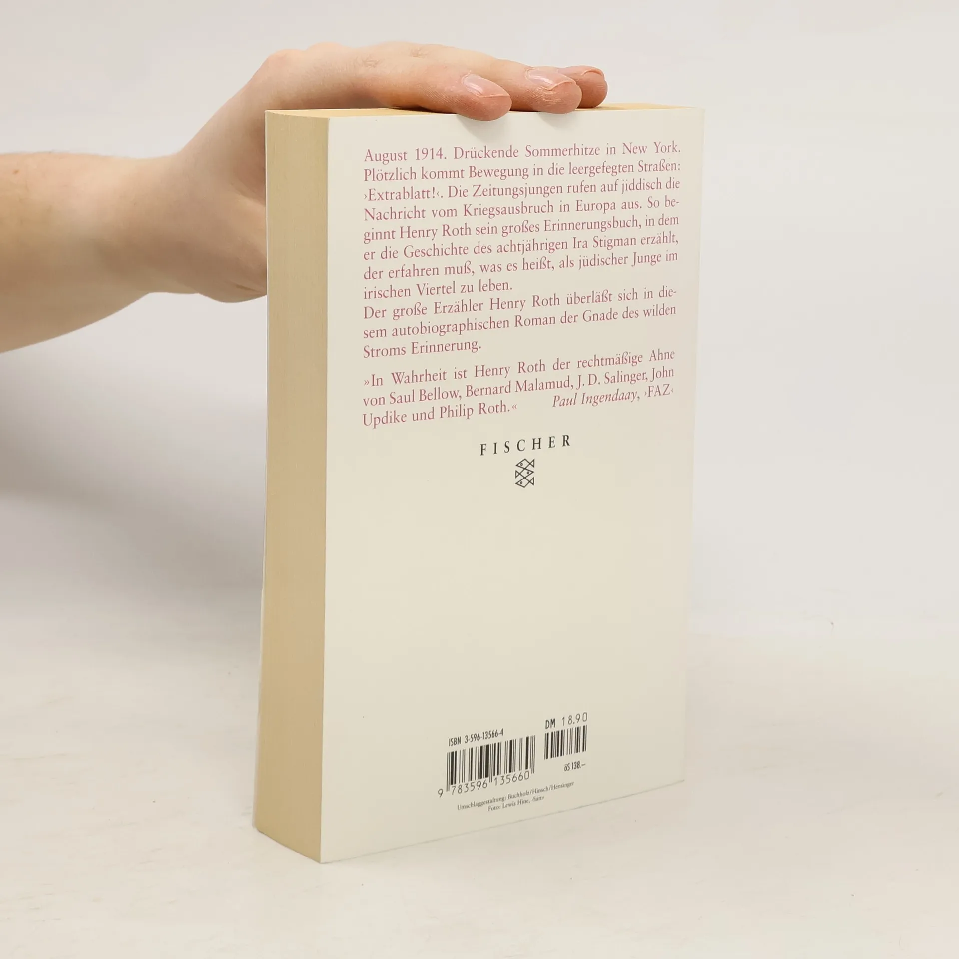 August 1914. Drückende Hochsommerhitze in New York. Plötzlich kommt Bewegung in die leergefegten Straßen: 'Extrablatt!'. Die Zeitungsverkäufer rufen auf jiddisch die Nachricht vom Kriegsausbruch in Europa aus. So beginnt Henry Roth sein großes Erinnerungsbuch. Er erzählt die Geschichte des achtjährigen Ira Stigman, Kind jüdischer Einwanderer, der erfahren muß, was es heißt, als jüdischer Junge im irischen Viertel zu leben. Die Geschichte wird mit zwei Stimmen erzählt: der des traditionellen Erzählers 1914 und der des altgewordenen Ira, des Autors selbst, der sich 1979 mit seinem Computer 'Ekklesias' über die Fragmente seiner Erinnerung unterhält - die beiden Zeiten greifen ineinander und kommentieren sich gegenseitig. Der große Erzähler Roth stellt sich in diesem autobiographischen Roman seiner Erinnerung, überläßt sich der Gnade des wilden Stroms Erinnerung.